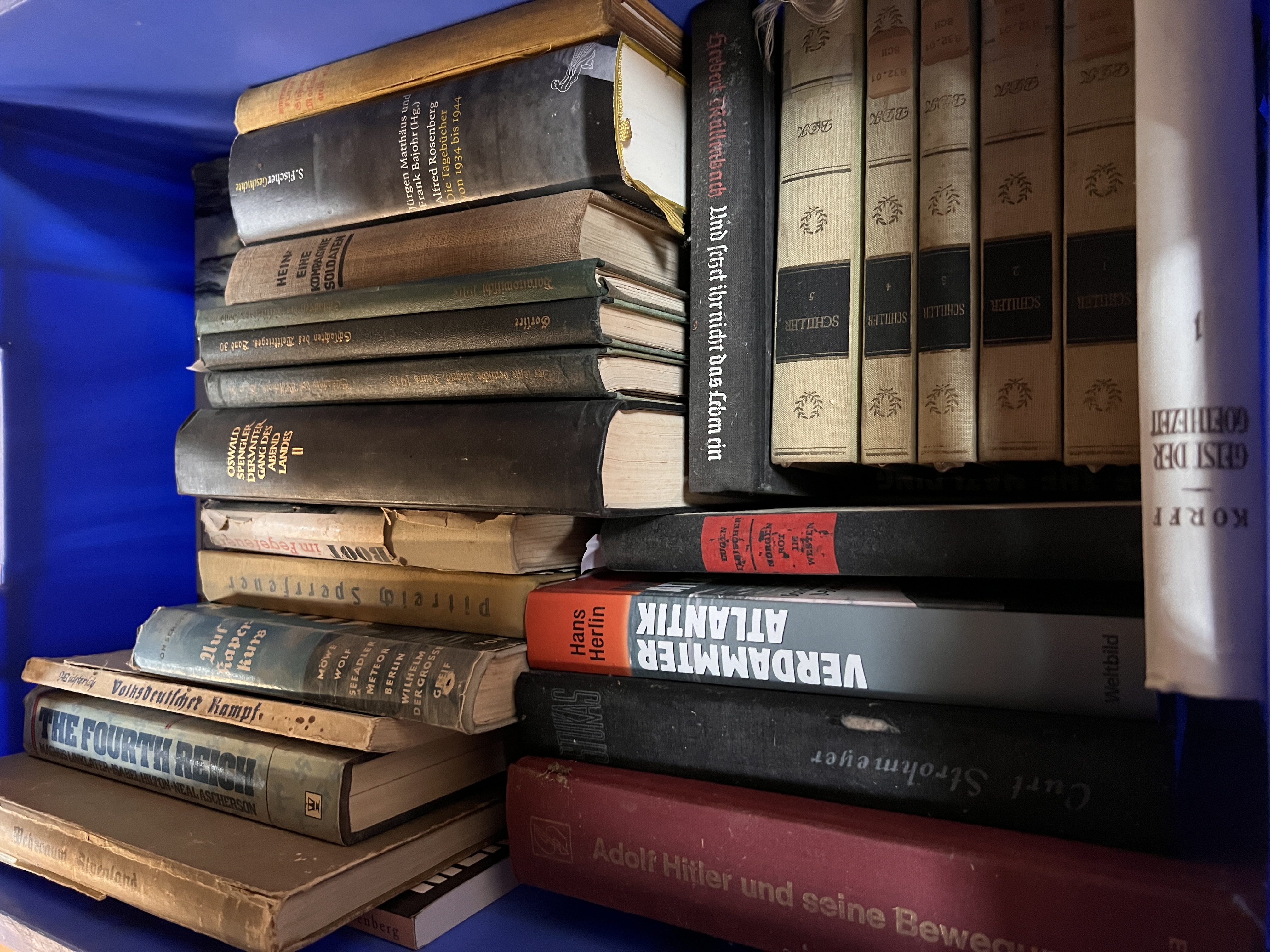A large collection of German and military interest books including Die Weltkriegsspionage hardback.