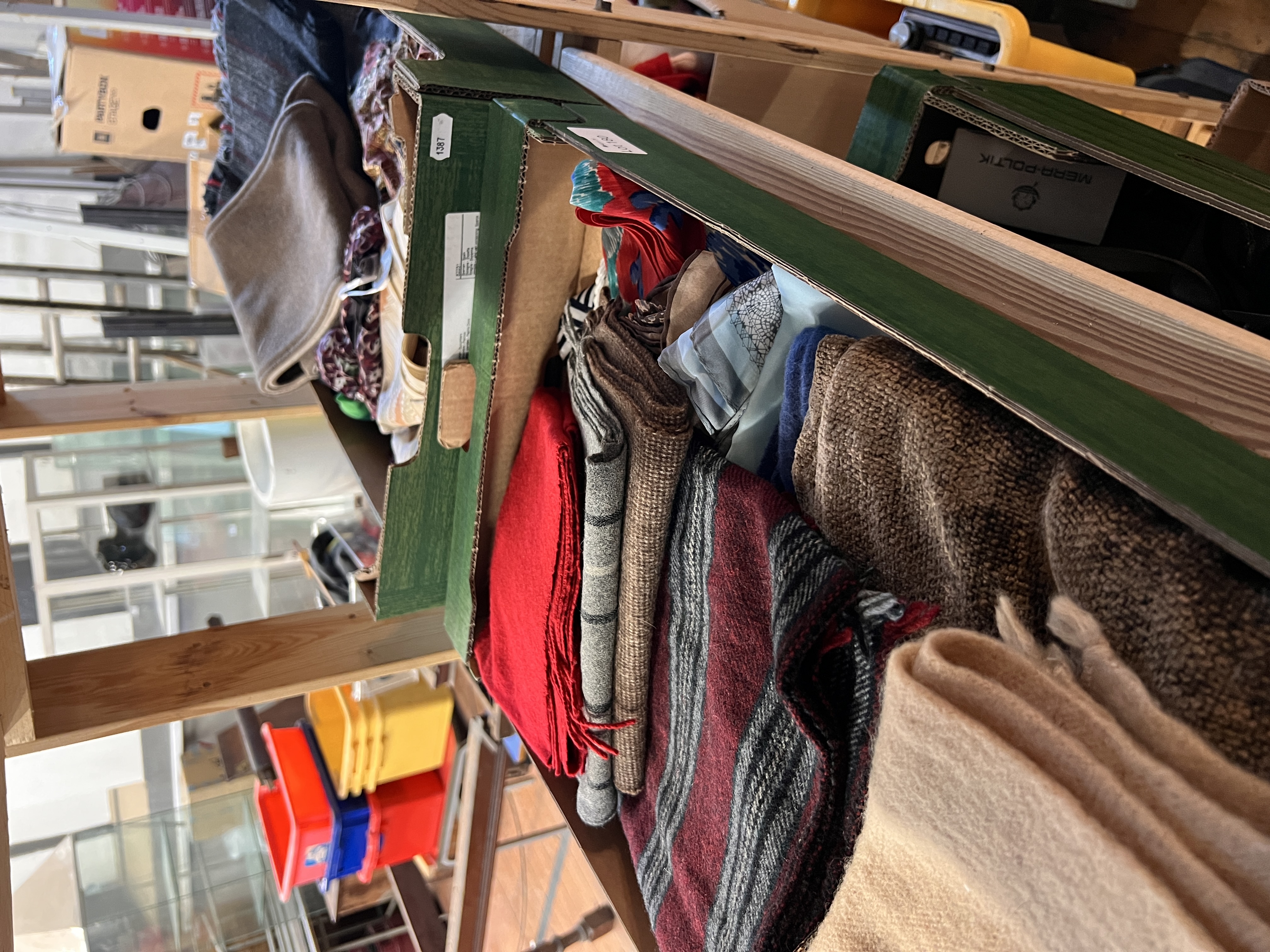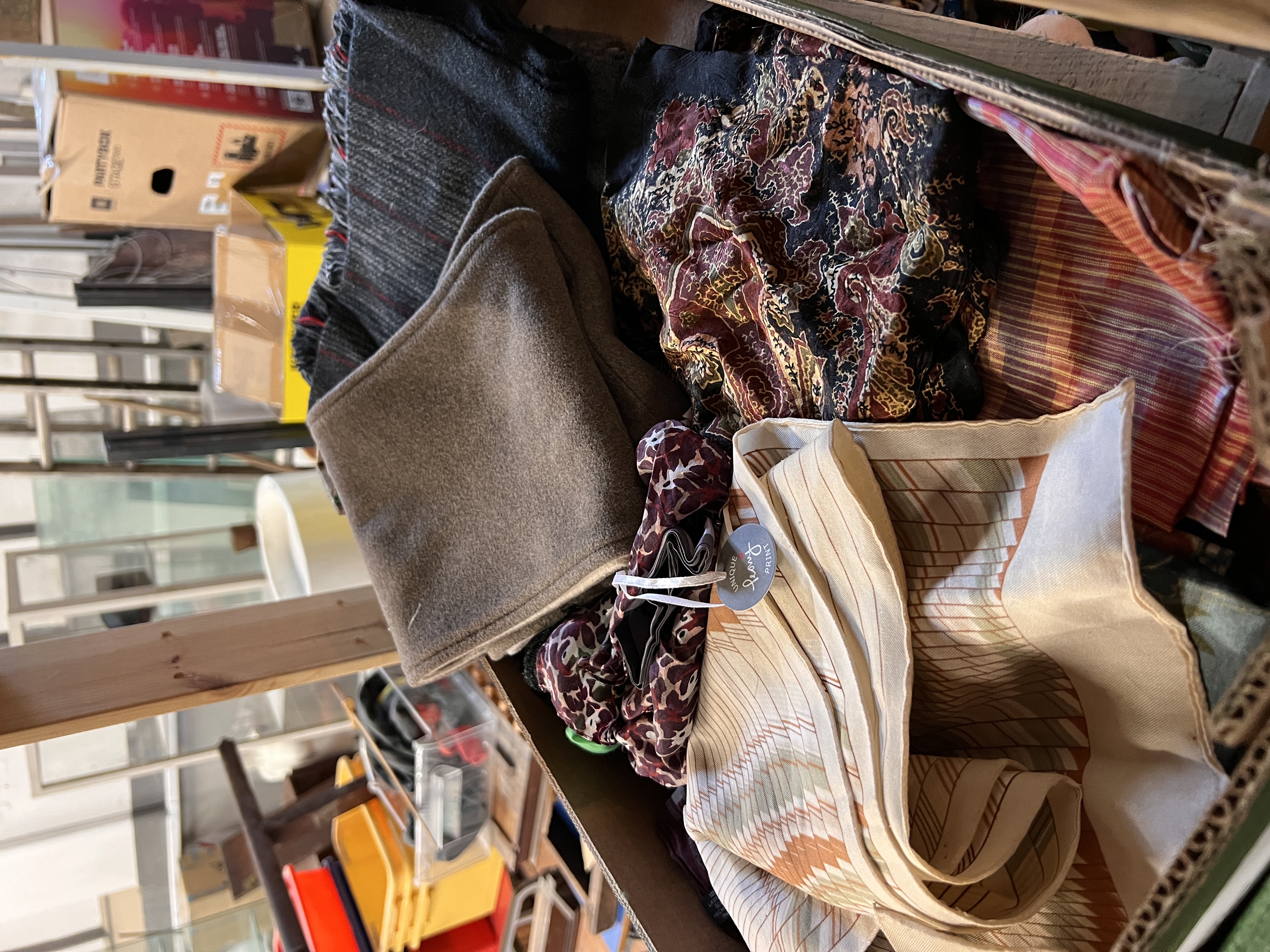 Two boxes of vintage ladies silk scarfs and neck ties etc.