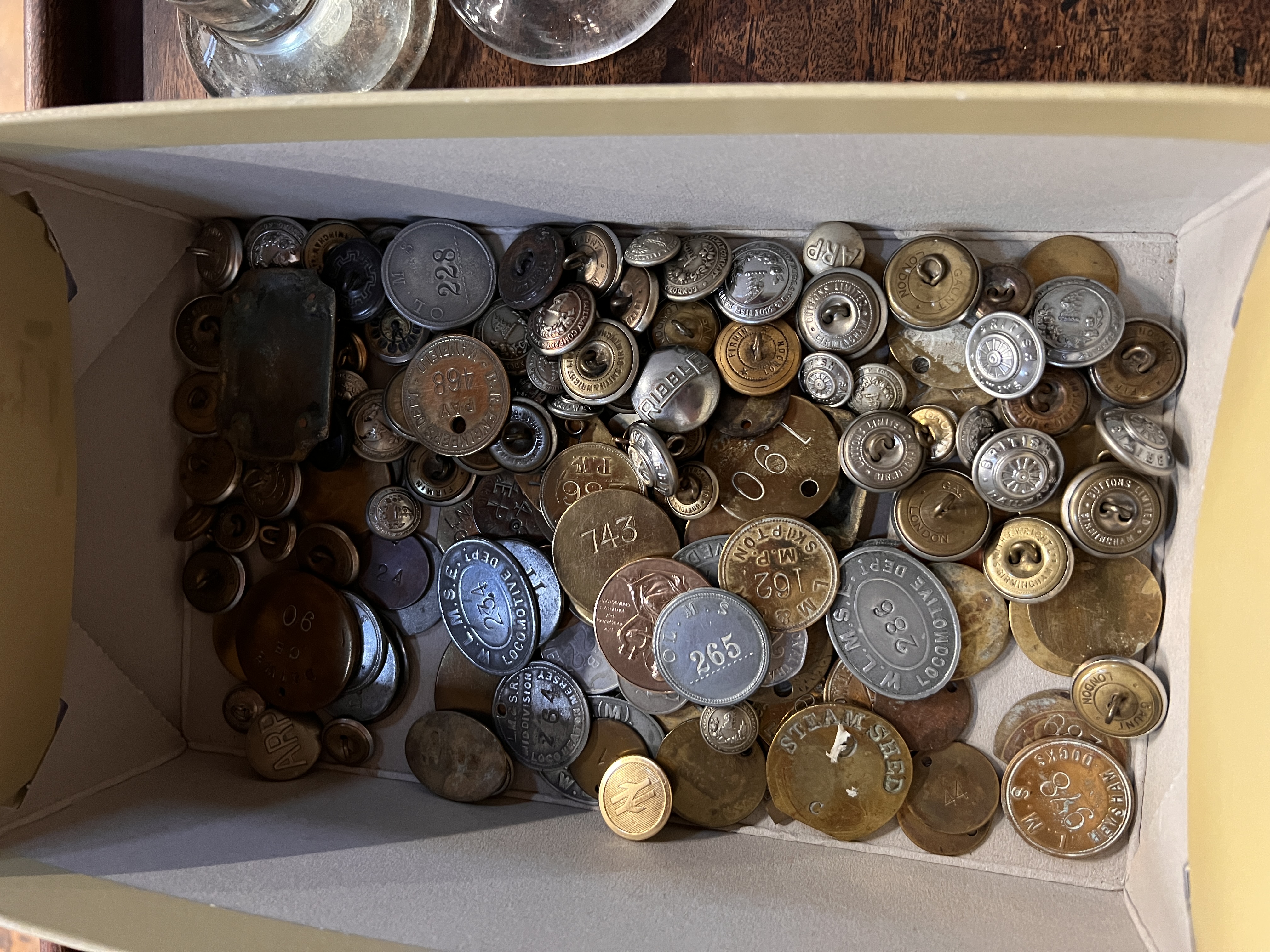 A selection of Railway and steam engine tokens and buttons. LMS BR Engineers etc