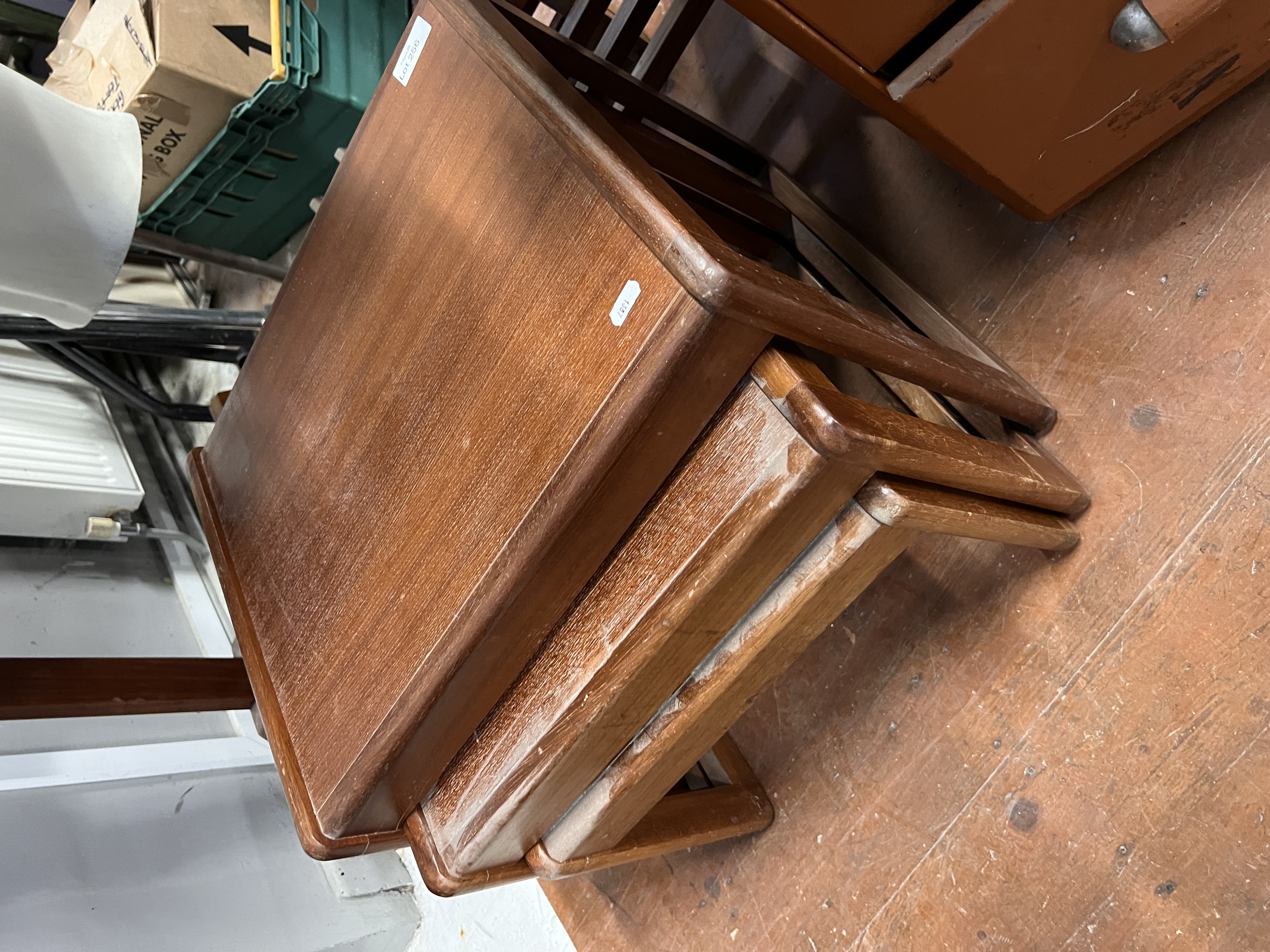 A nest of three mid-century G Plan style tables.