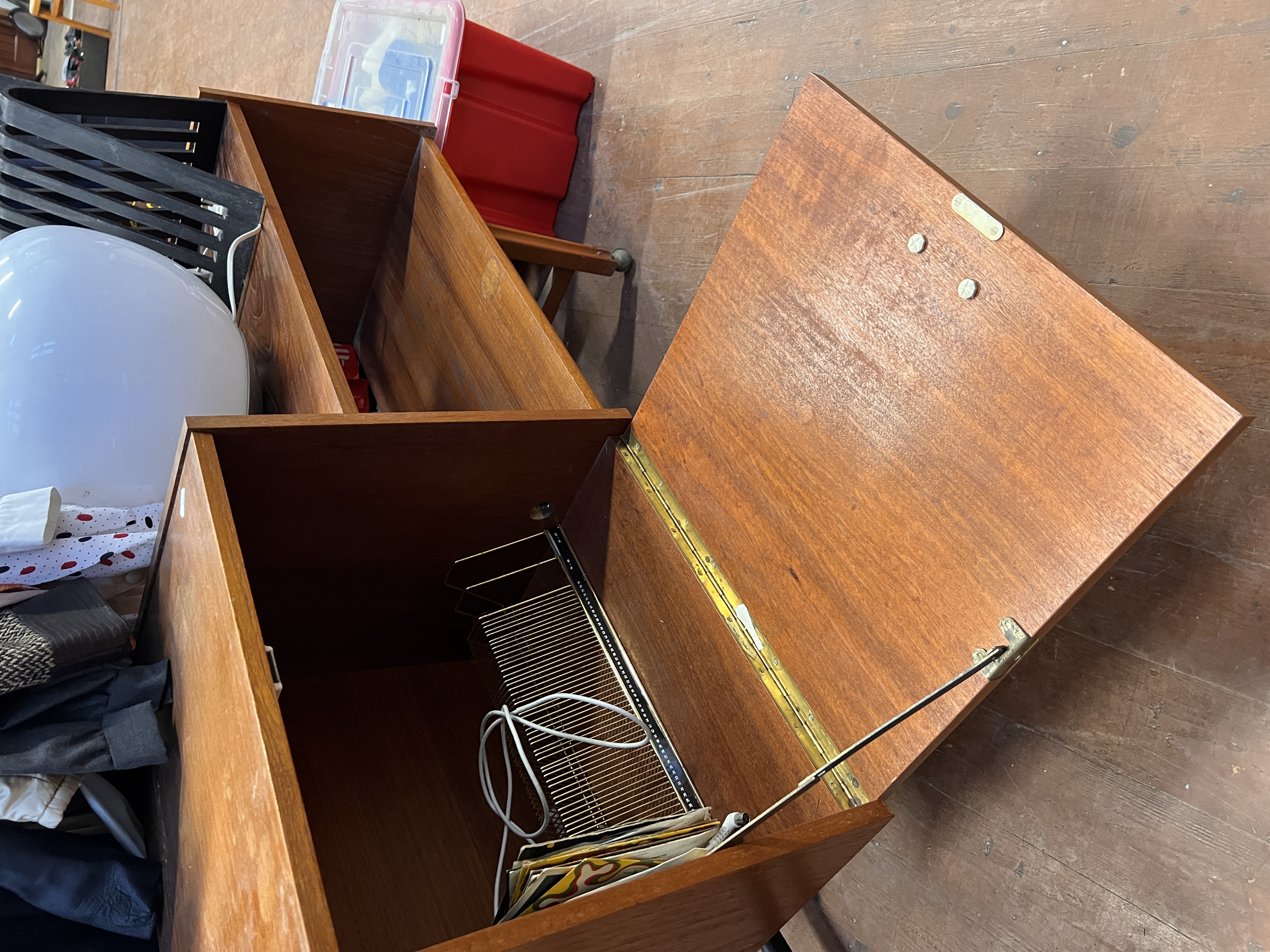 A vintage mid-century Teak record and high fi system cabinet stand.