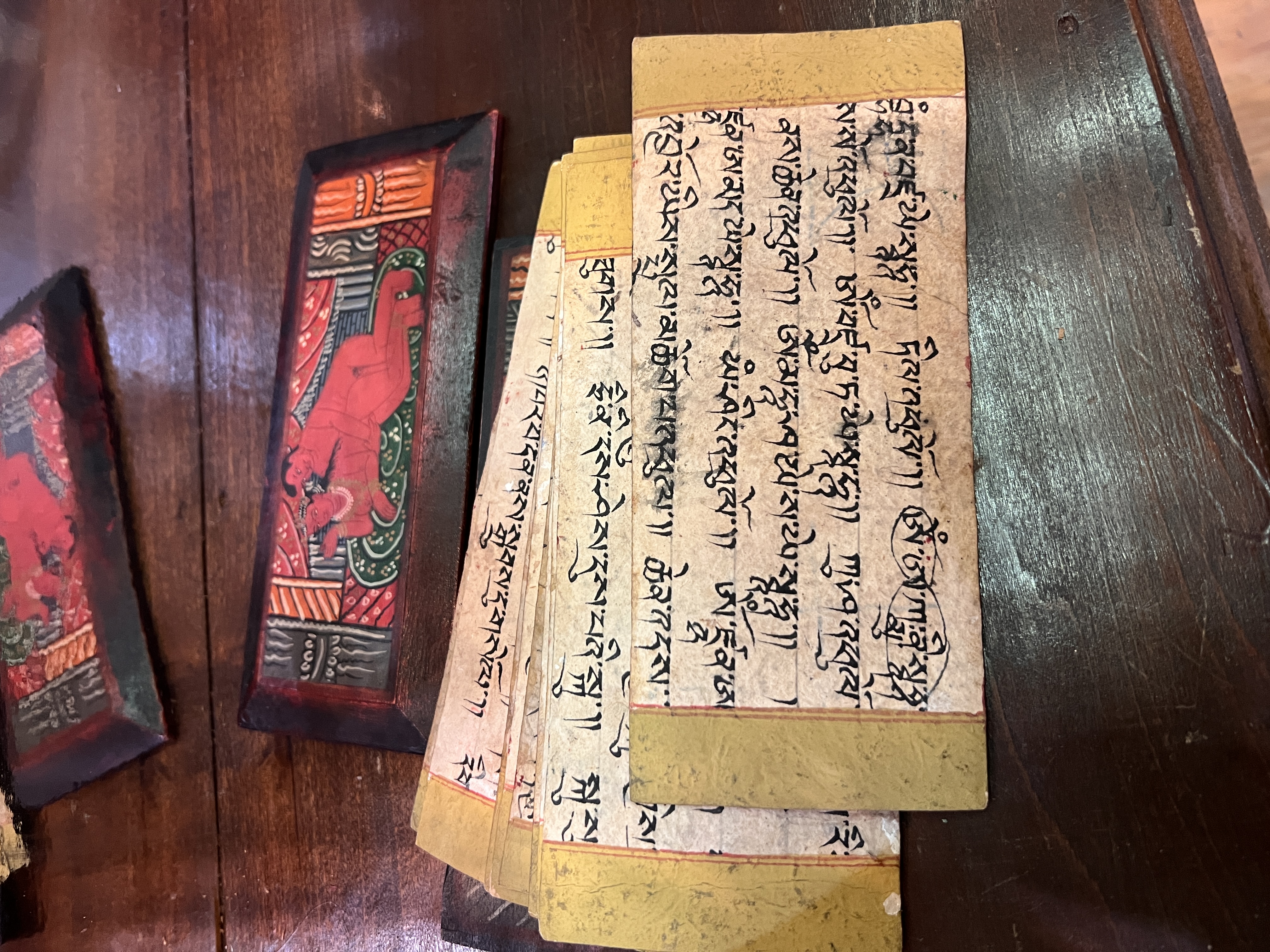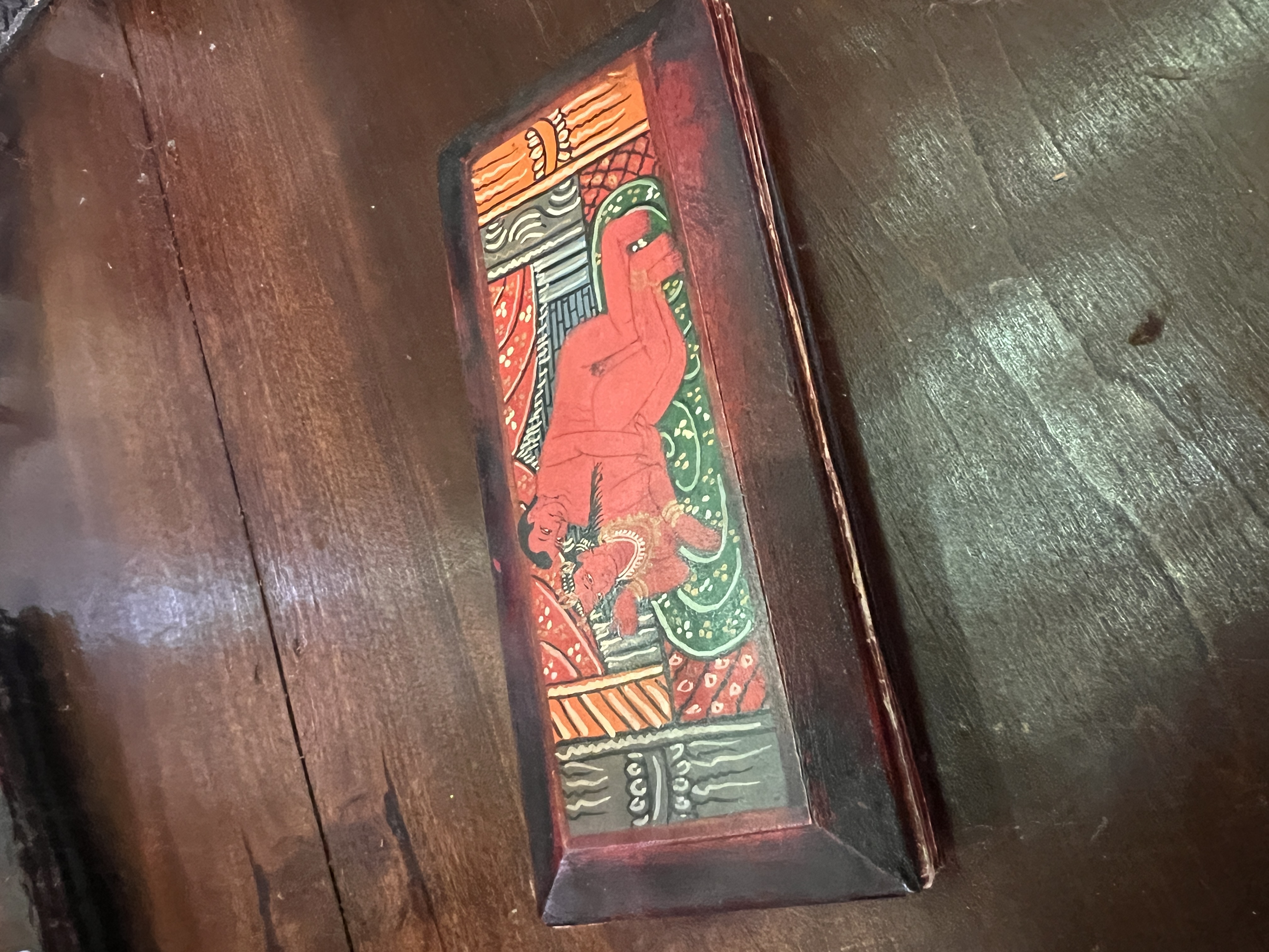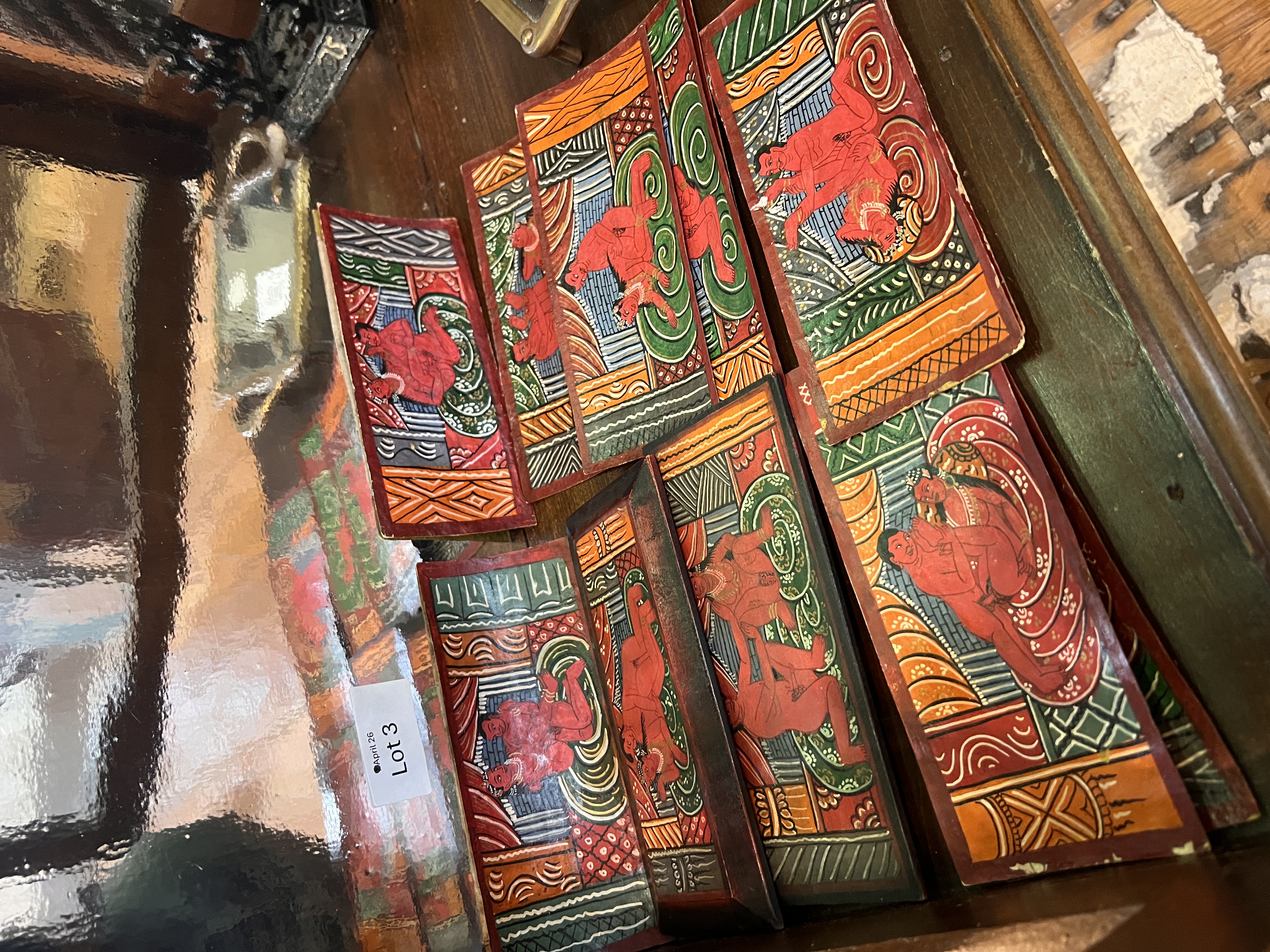 A set of early 20th century hand painted Karma Sutra Kavadh or story tellers box.