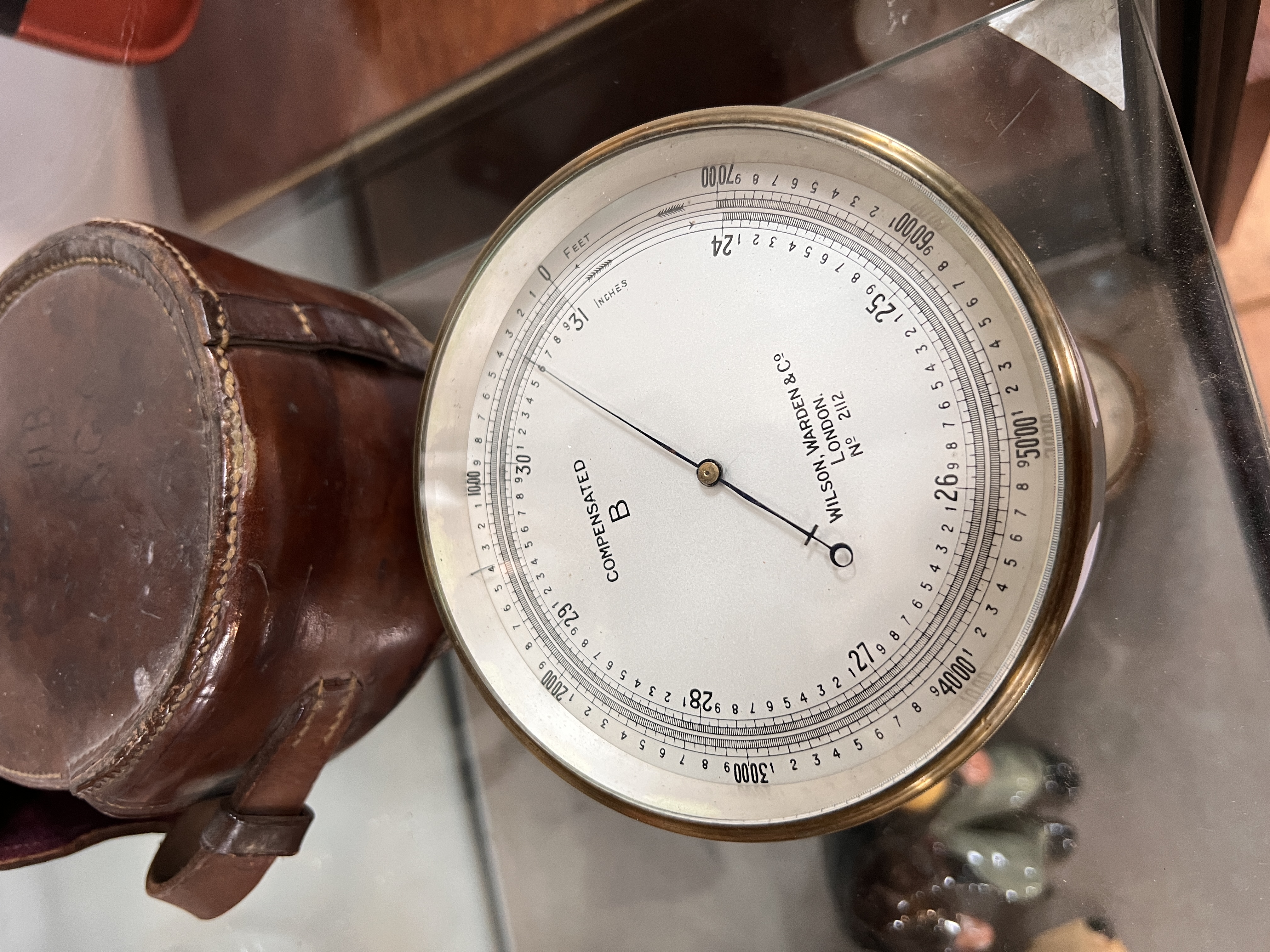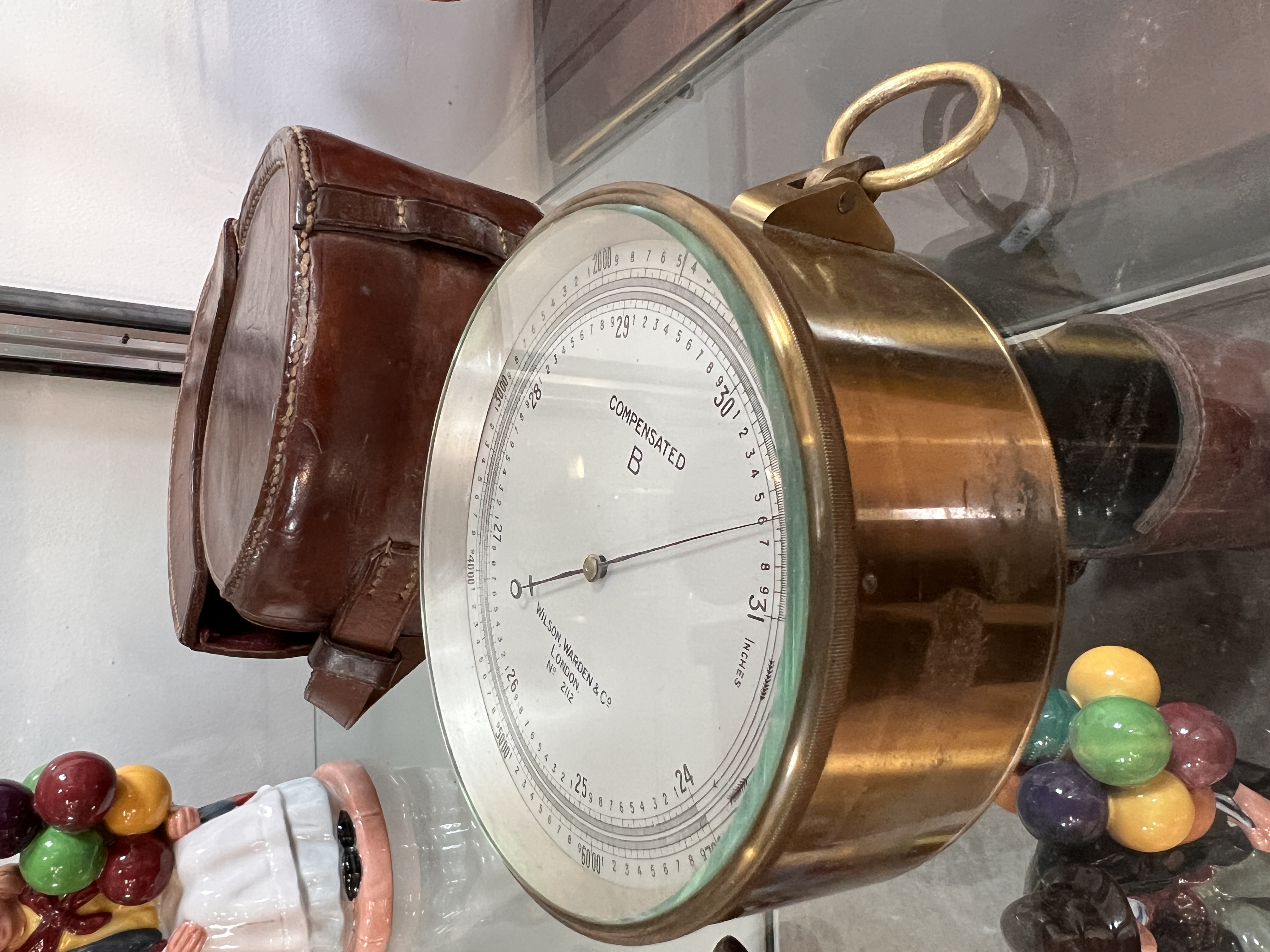 An early 20th century Wilson, Warden and Co aneroid barometer Compensated B, with fitted leather case.