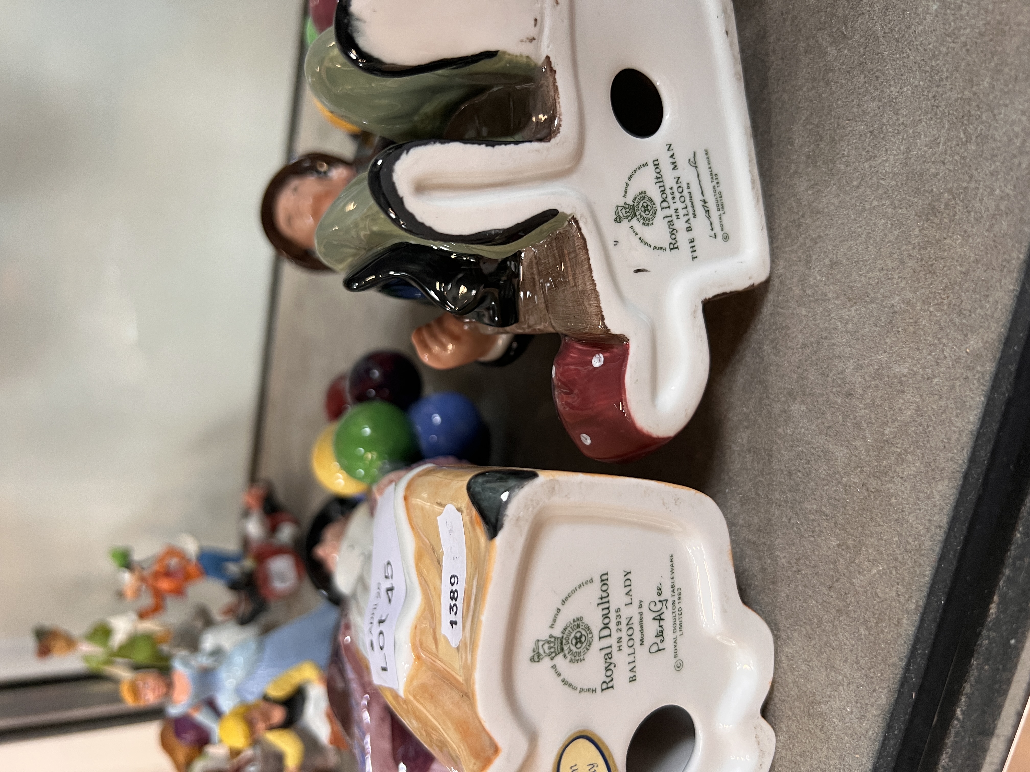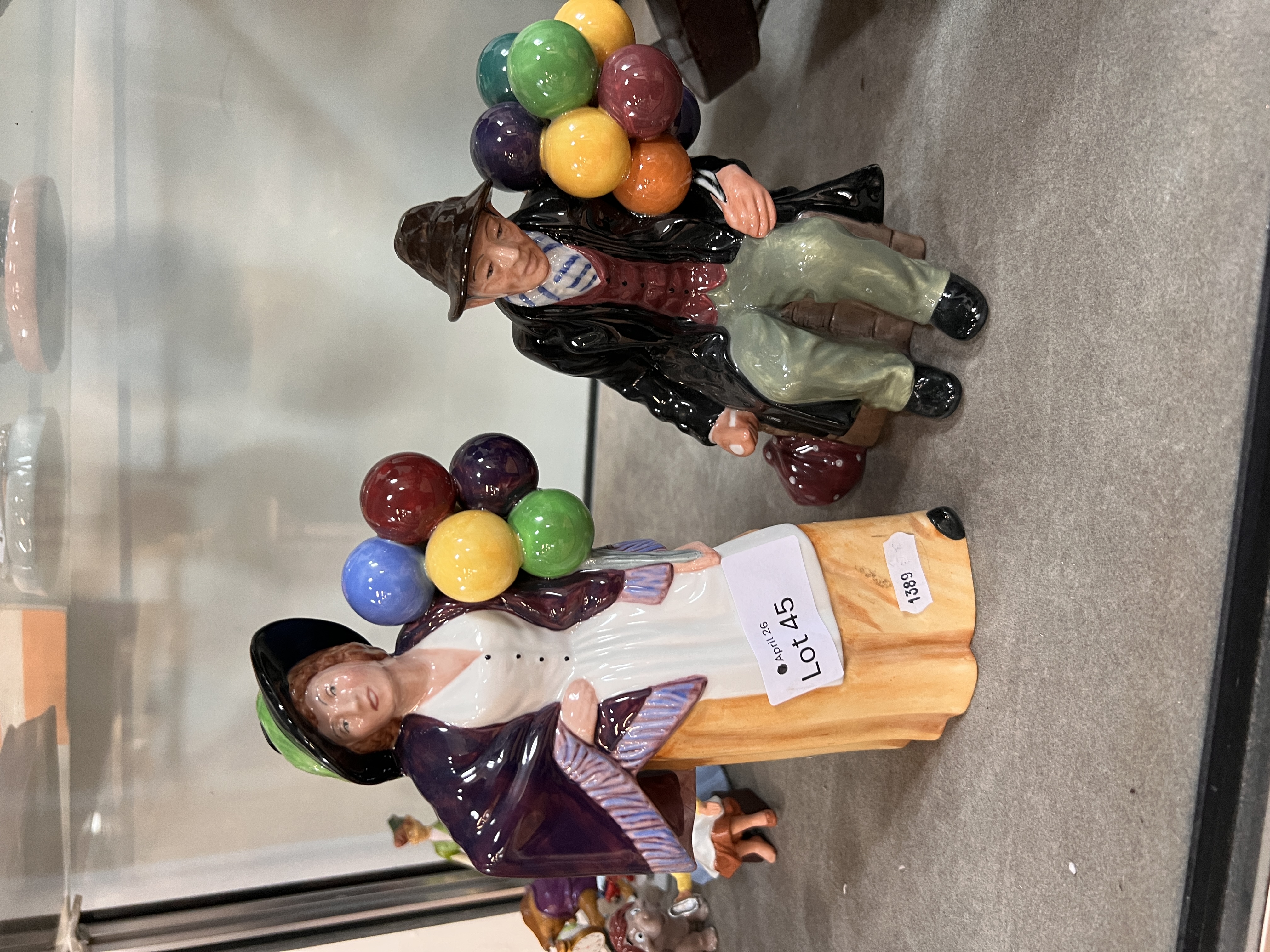 Two Royal Doulton figures including Balloon Man and Lady HN2935, HN1954.