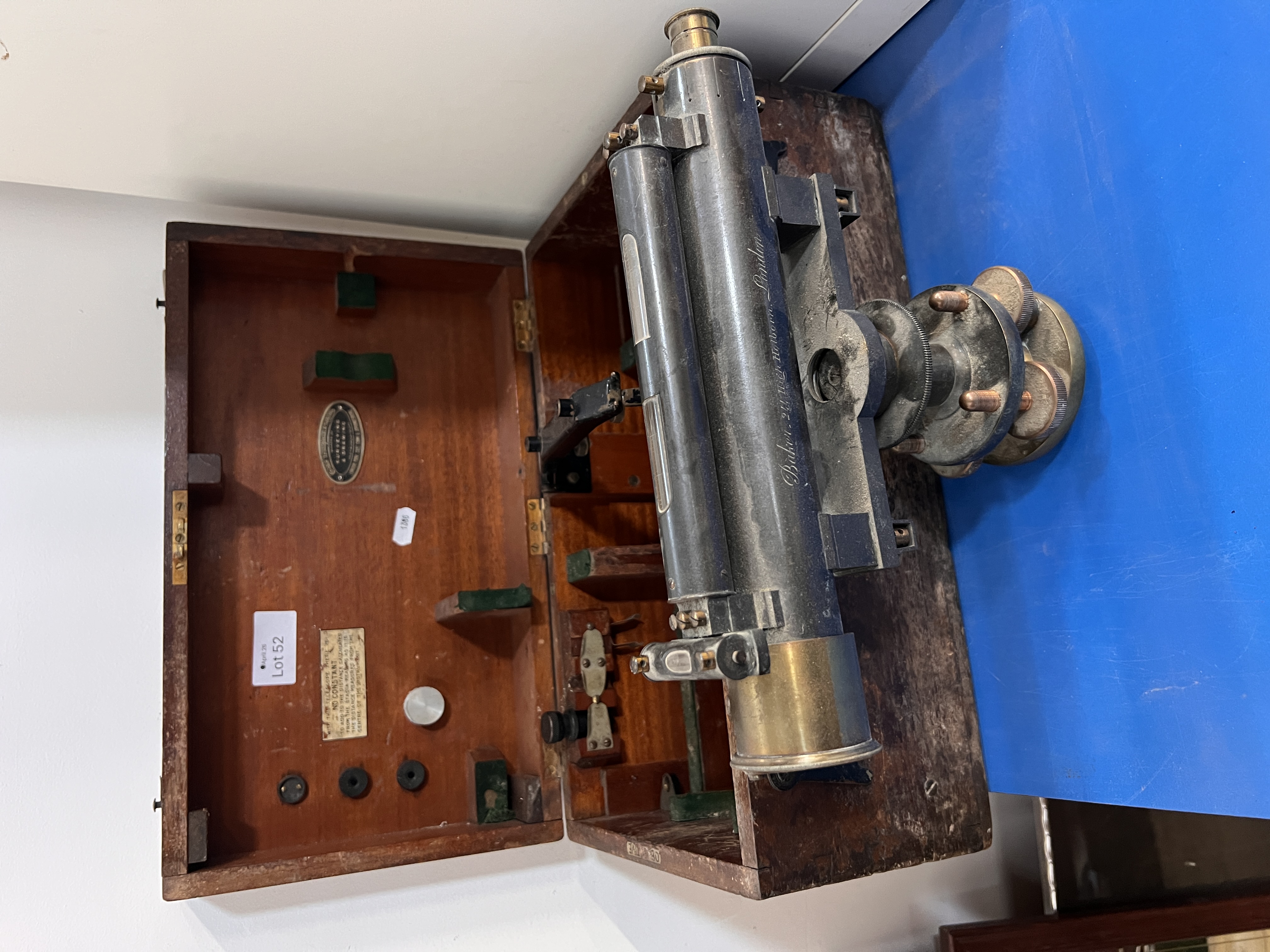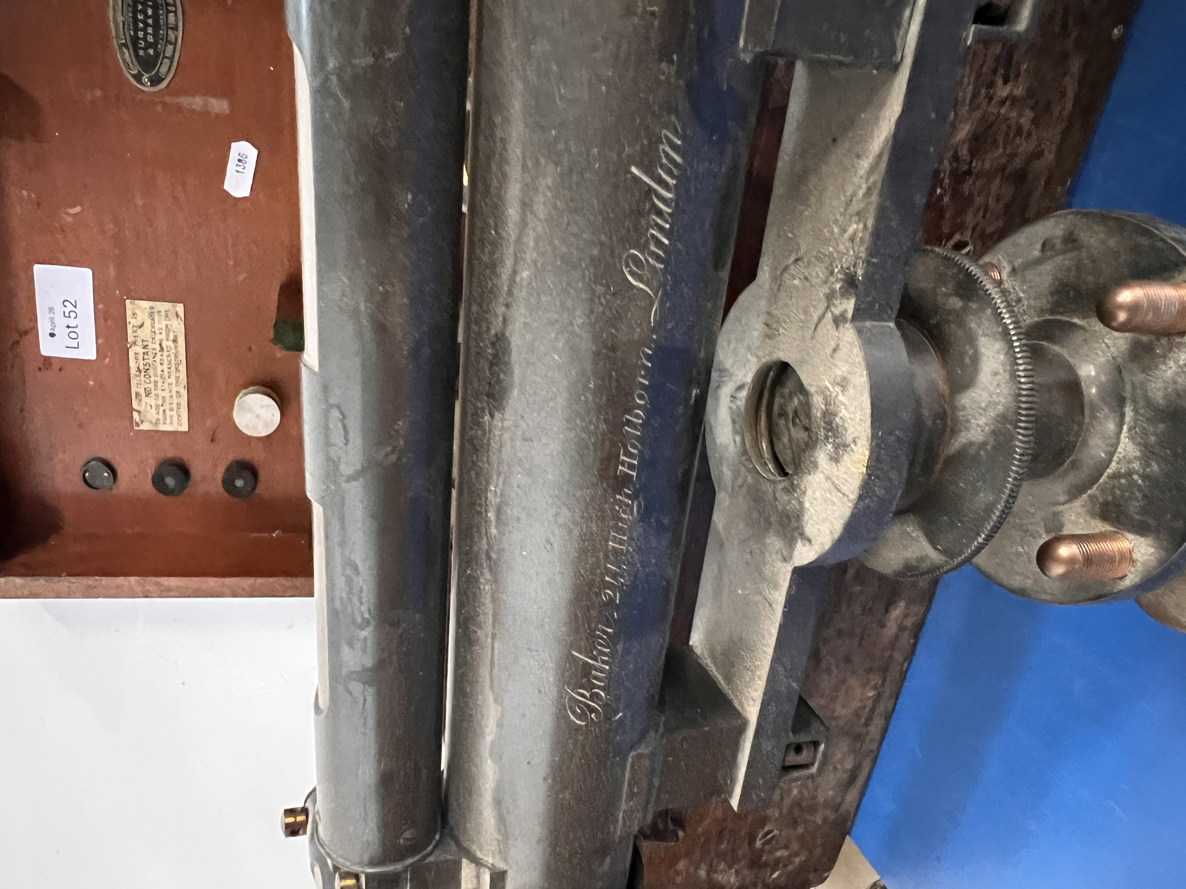 An antique surveyors theodolite, Baker 244 Holborn London with Cooke Troughton case.