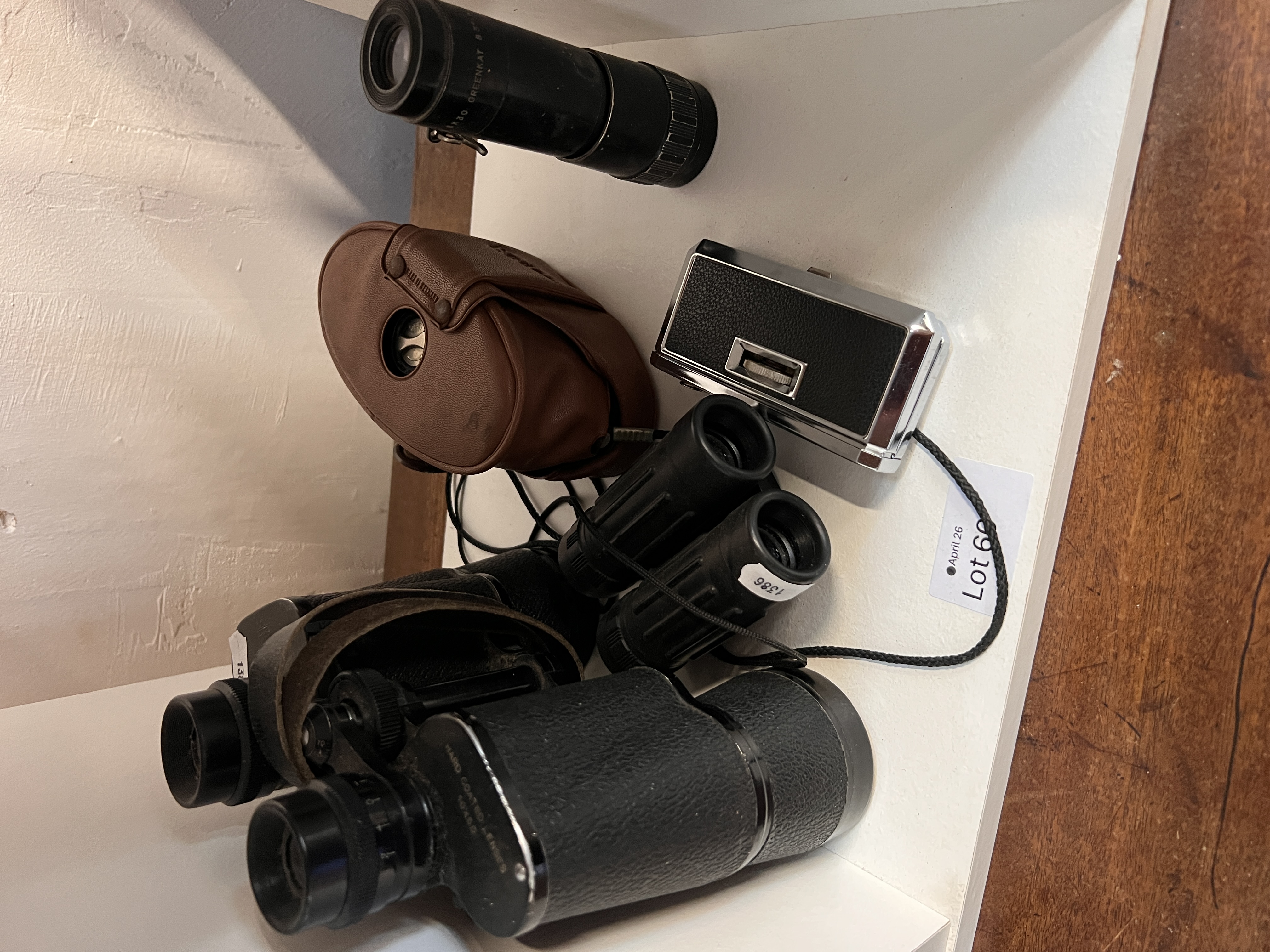 A selection of optics including 8×30 Greencat Ocular and Regent 10×50 binoculars.