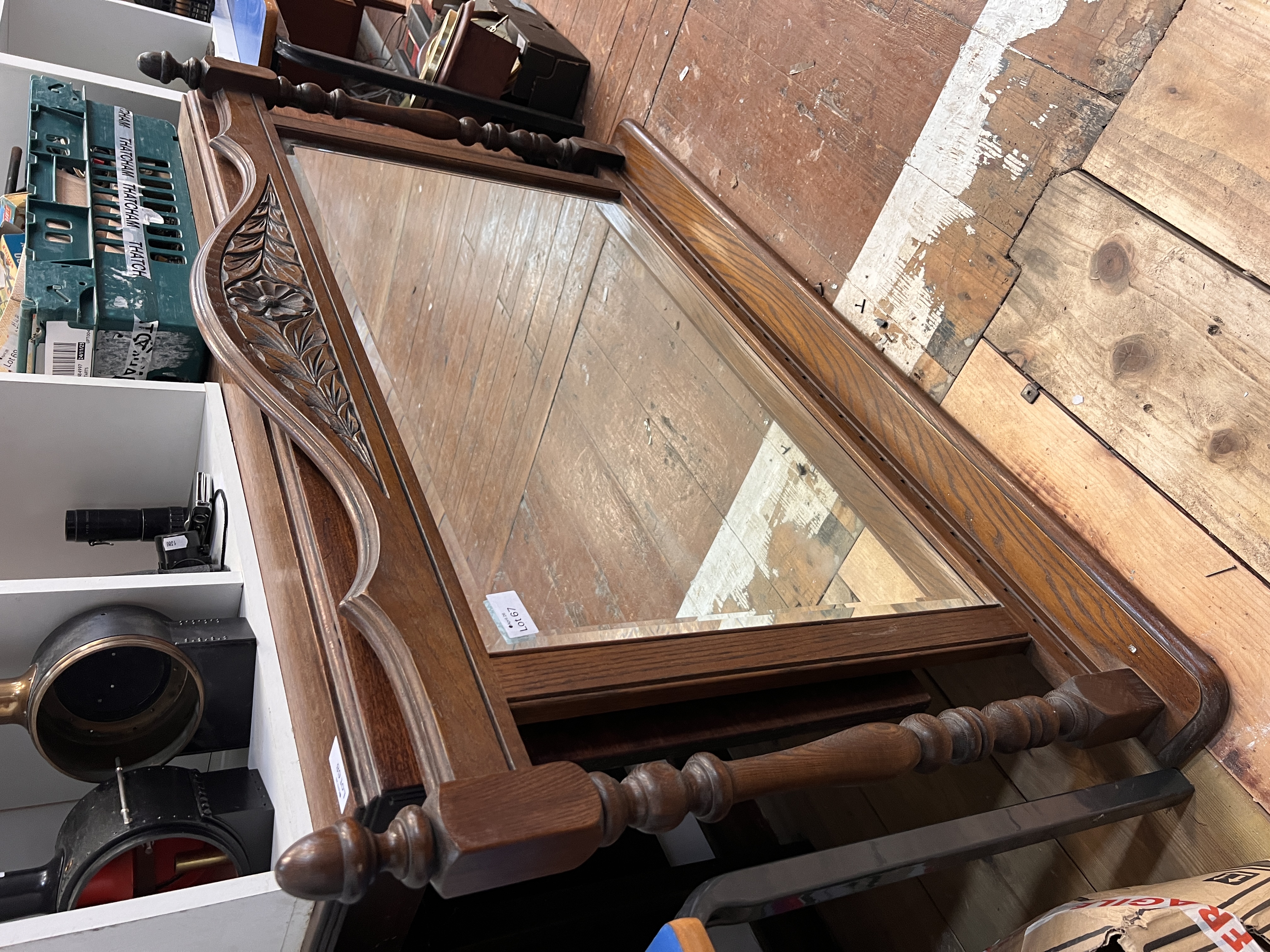 An Old Charm oak frame over-mantle mirror. 130cm wide.