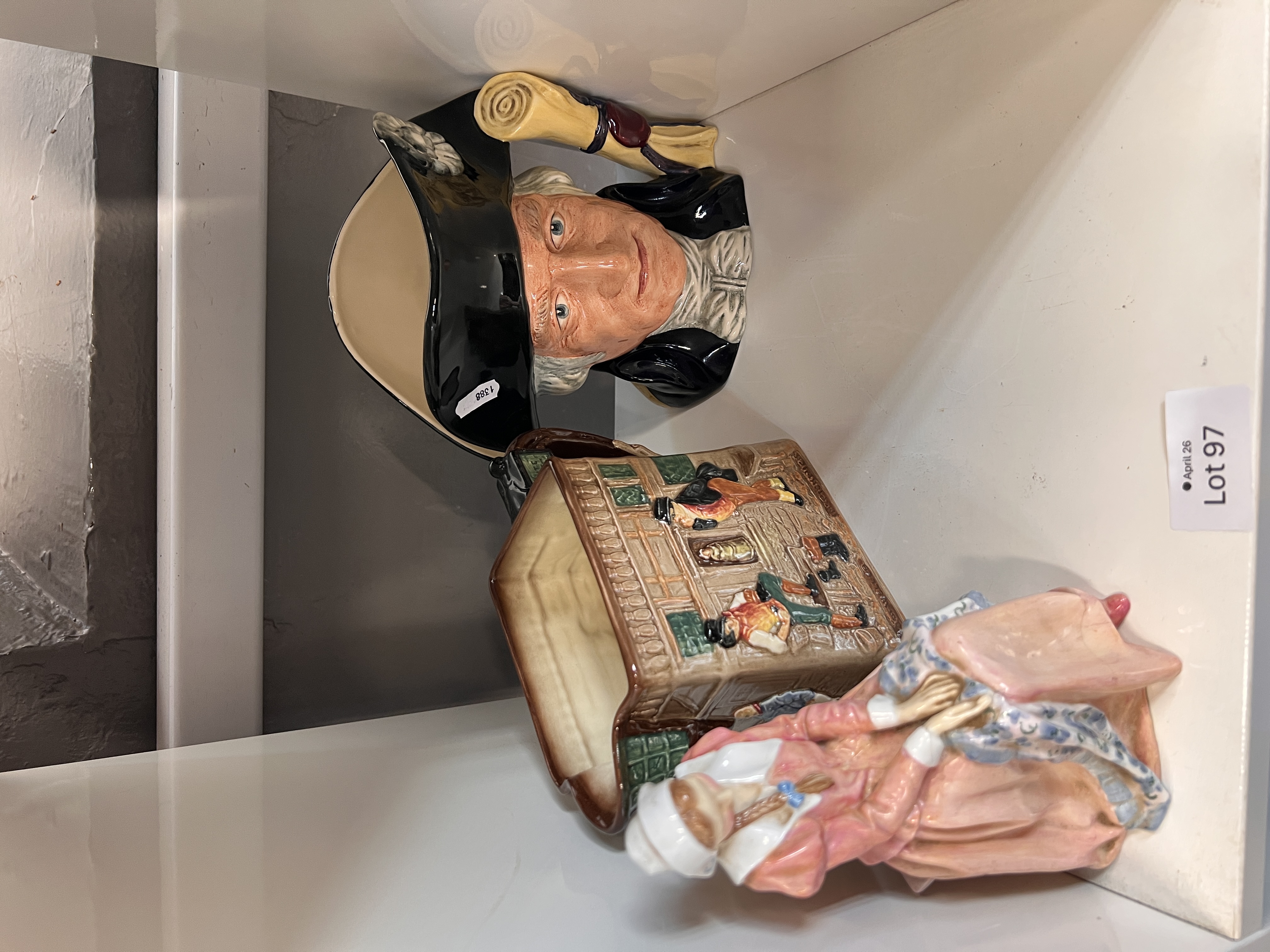 Three pieces of Royal Doulton including Pickwick papers jug no.317035, Prudence figure HN1884 and George Washington character jug