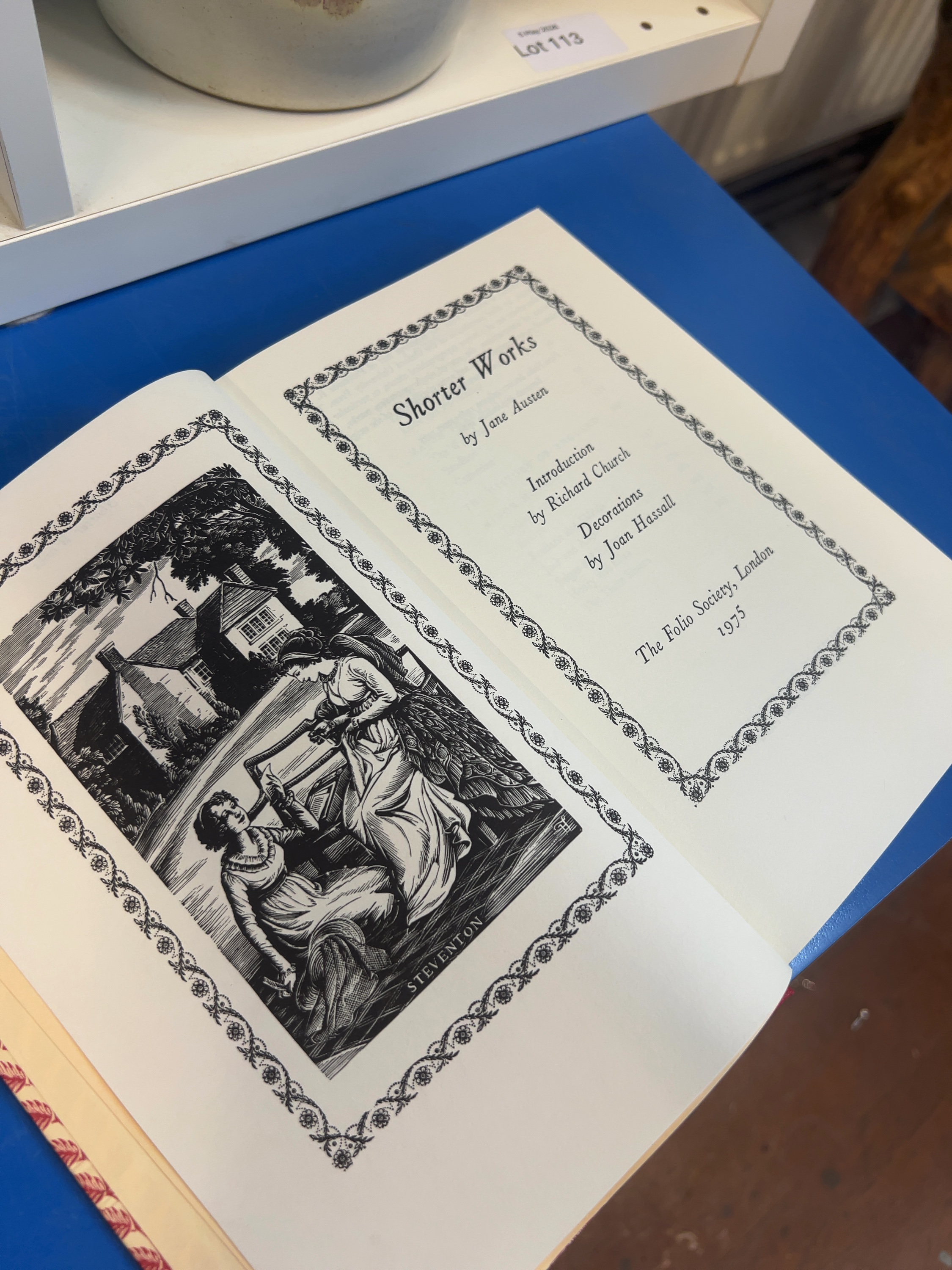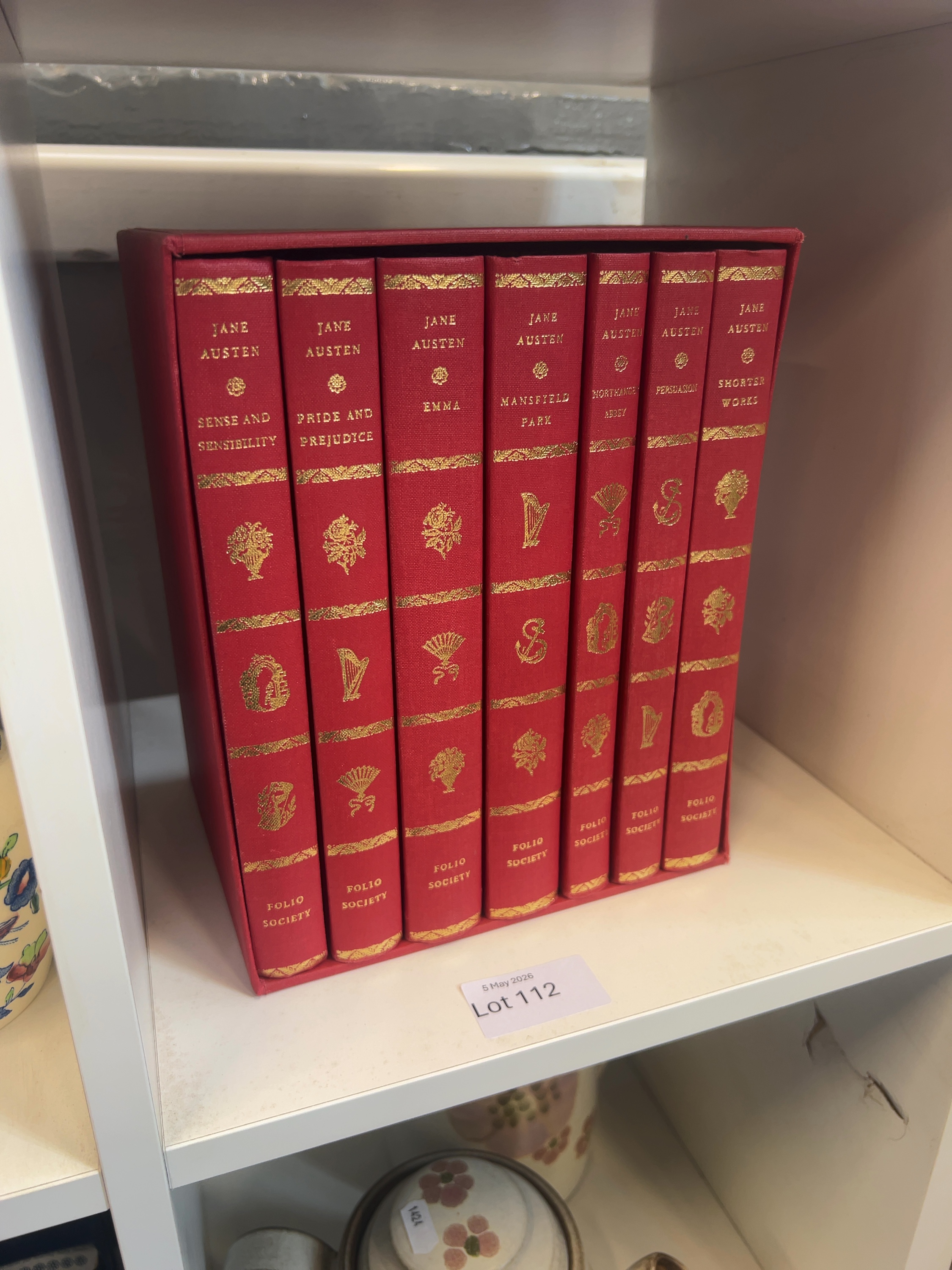 A seven-volume set of the complete novels and works of Jane Austen, published by The Folio Society, London, in 1975. The collection comprises the titles Sense and Sensibility, Pride and Prejudice, Emma, Mansfield Park, Northanger Abbey, Persuasion, and Shorter Works.