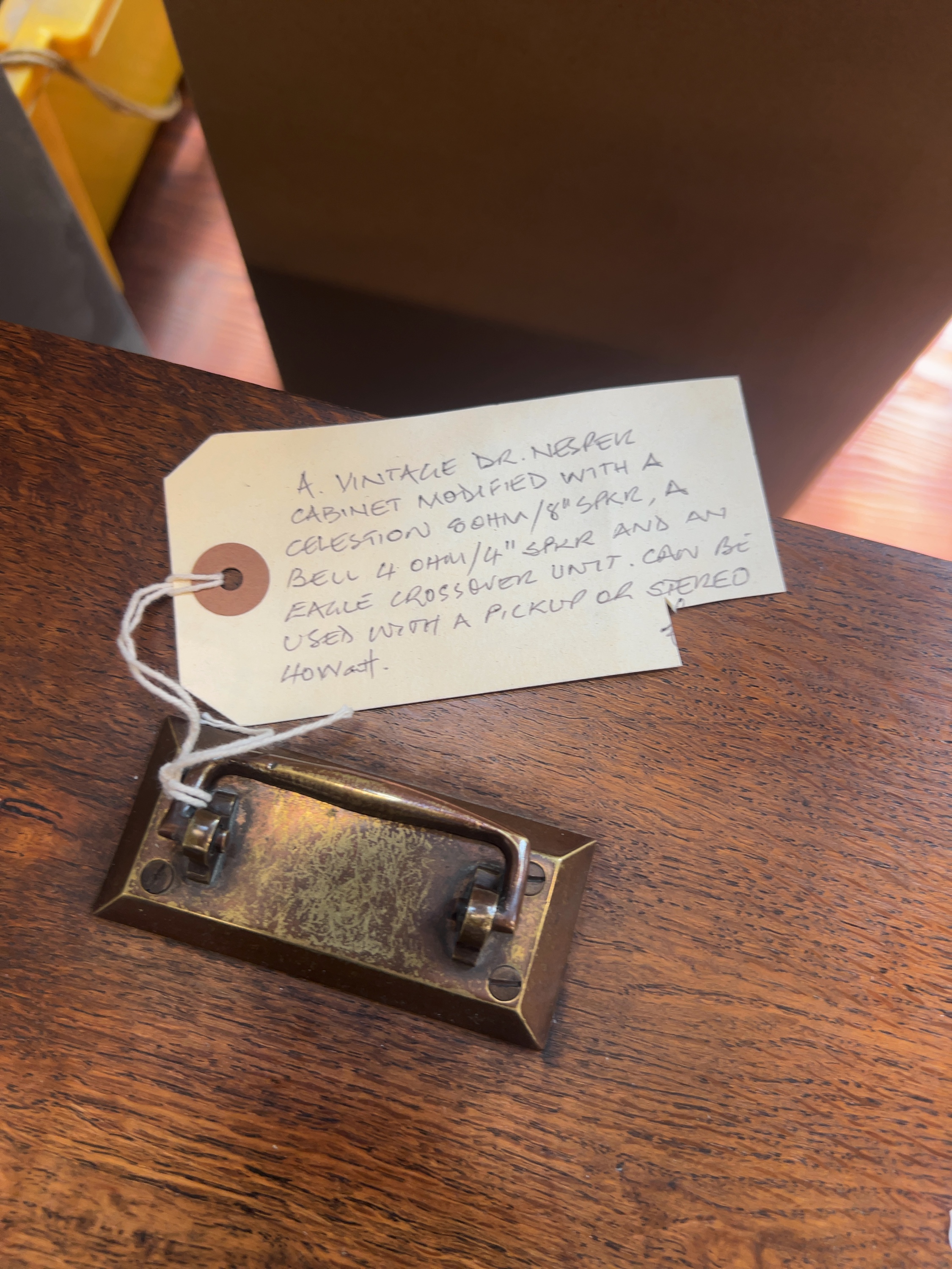 The unit has been upgraded with a two-way speaker system. Based on accompanying documentation, this includes an 8-inch Celestion 8-ohm main speaker, a 4-inch Bell component speaker, and an Eagle frequency crossover unit. The back panel is fitted with a contemporary single RCA phono input jack. The unit is stated to have a power handling of 40 watts.