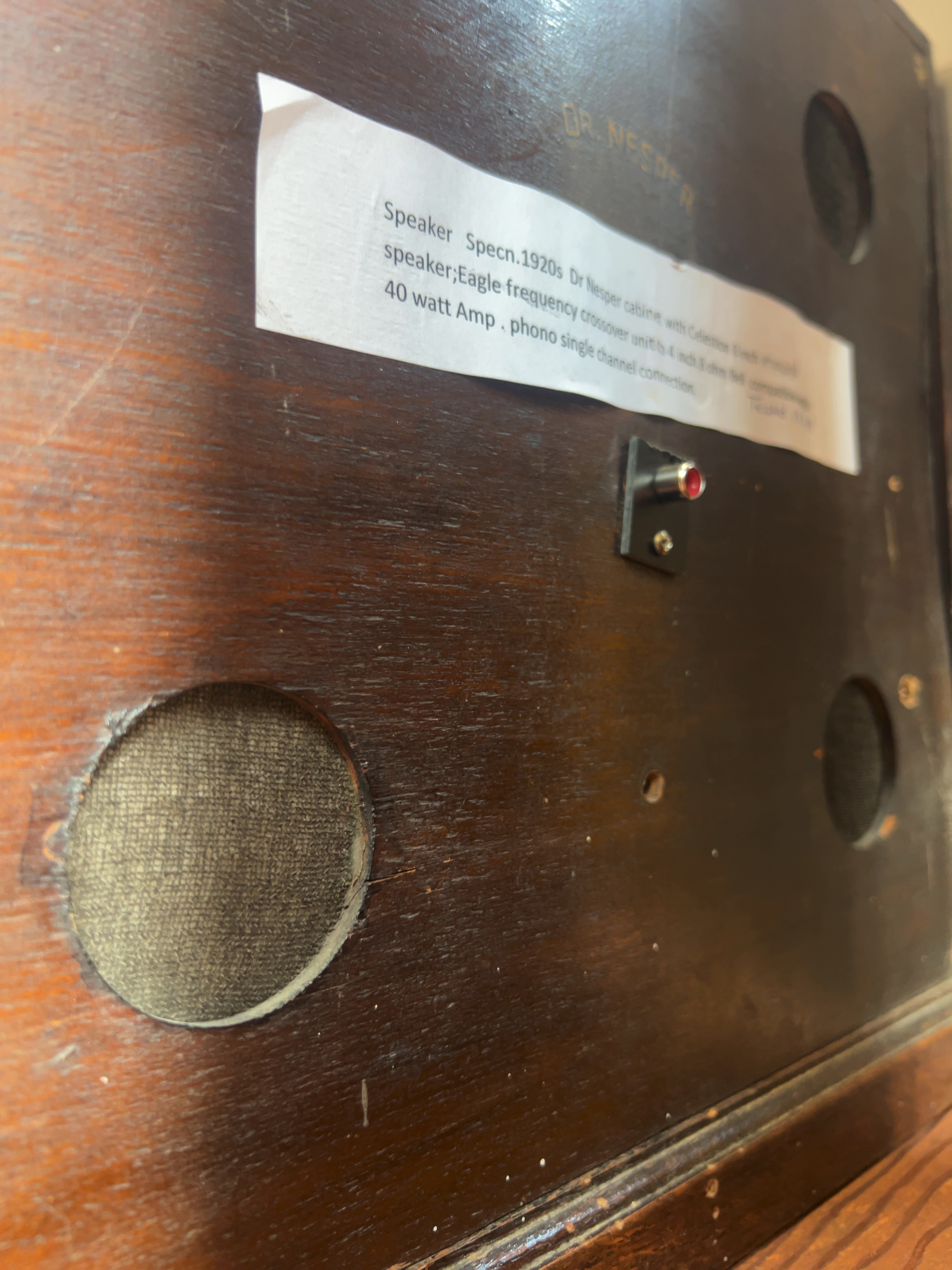 This vintage speaker cabinet, manufactured by Dr Nesper (Eugen Nesper GmbH), dates from the late 1920s and has been internally modified for contemporary use.