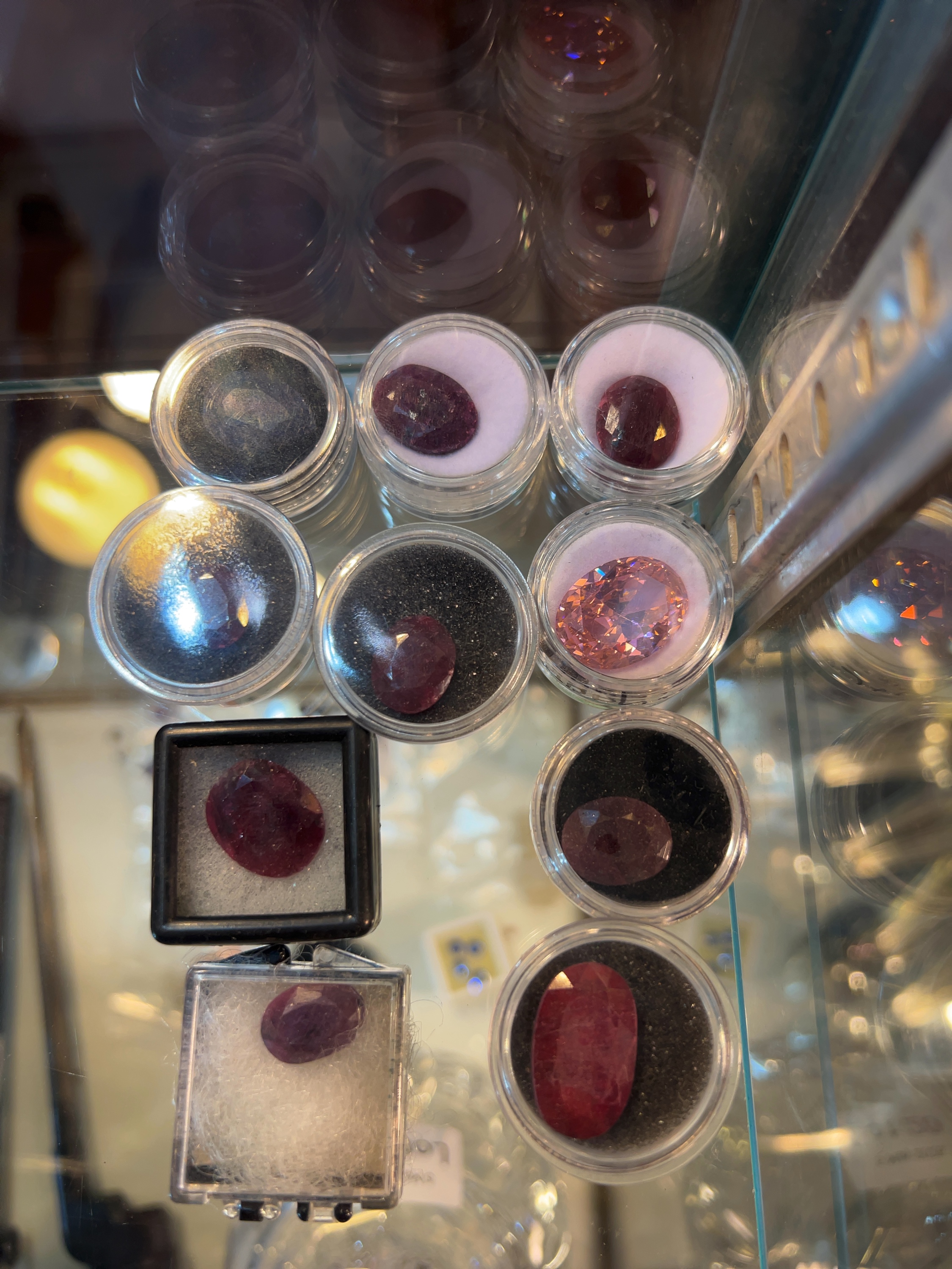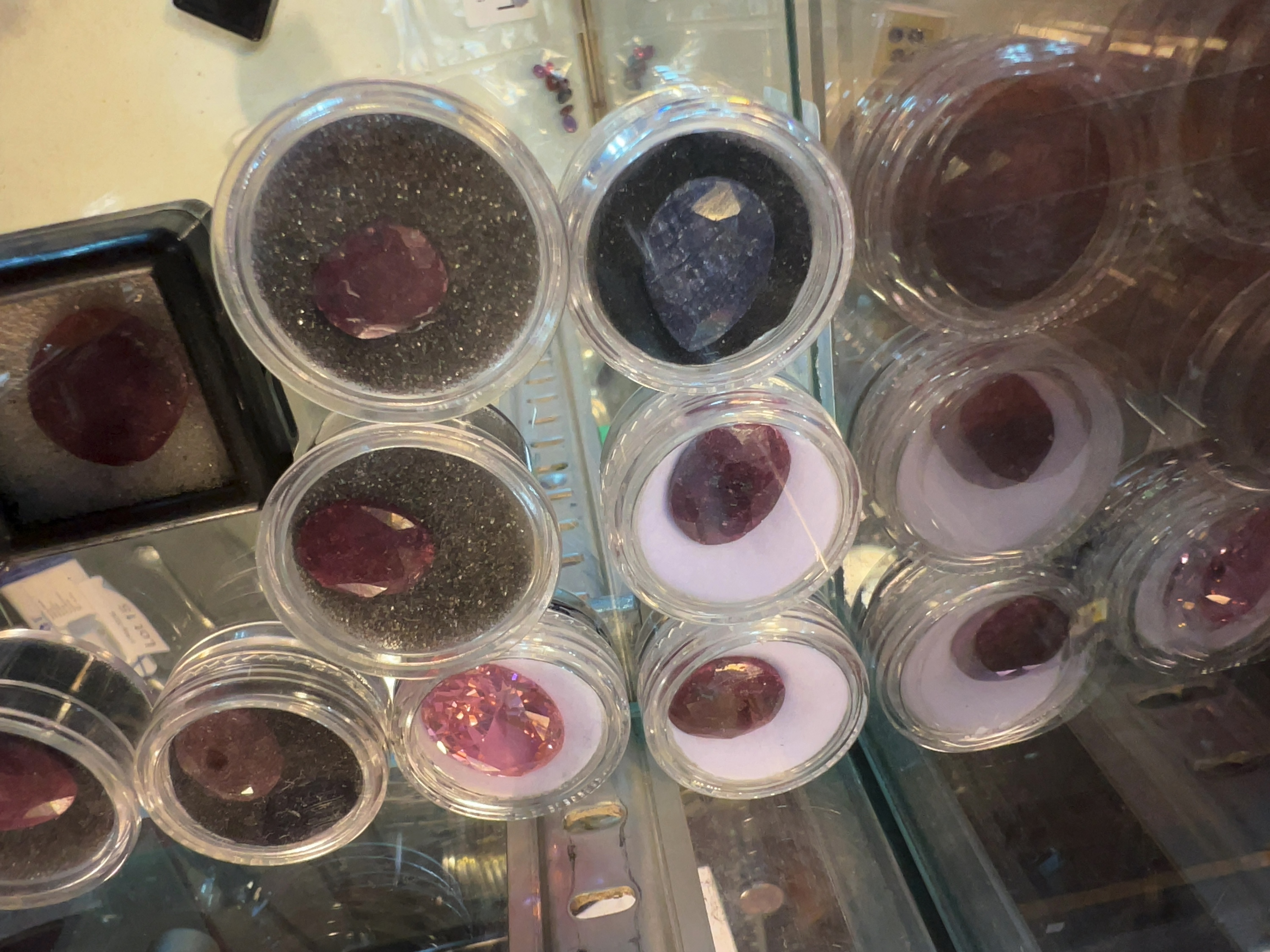 The gemstones exhibit varying degrees of clarity, with several specimens showing eye-visible internal inclusions. The stones appear to be in generally good condition with no significant surface chips or scratches immediately apparent, though fine facet-edge wear and minor surface abrasions consistent with loose storage may be present.