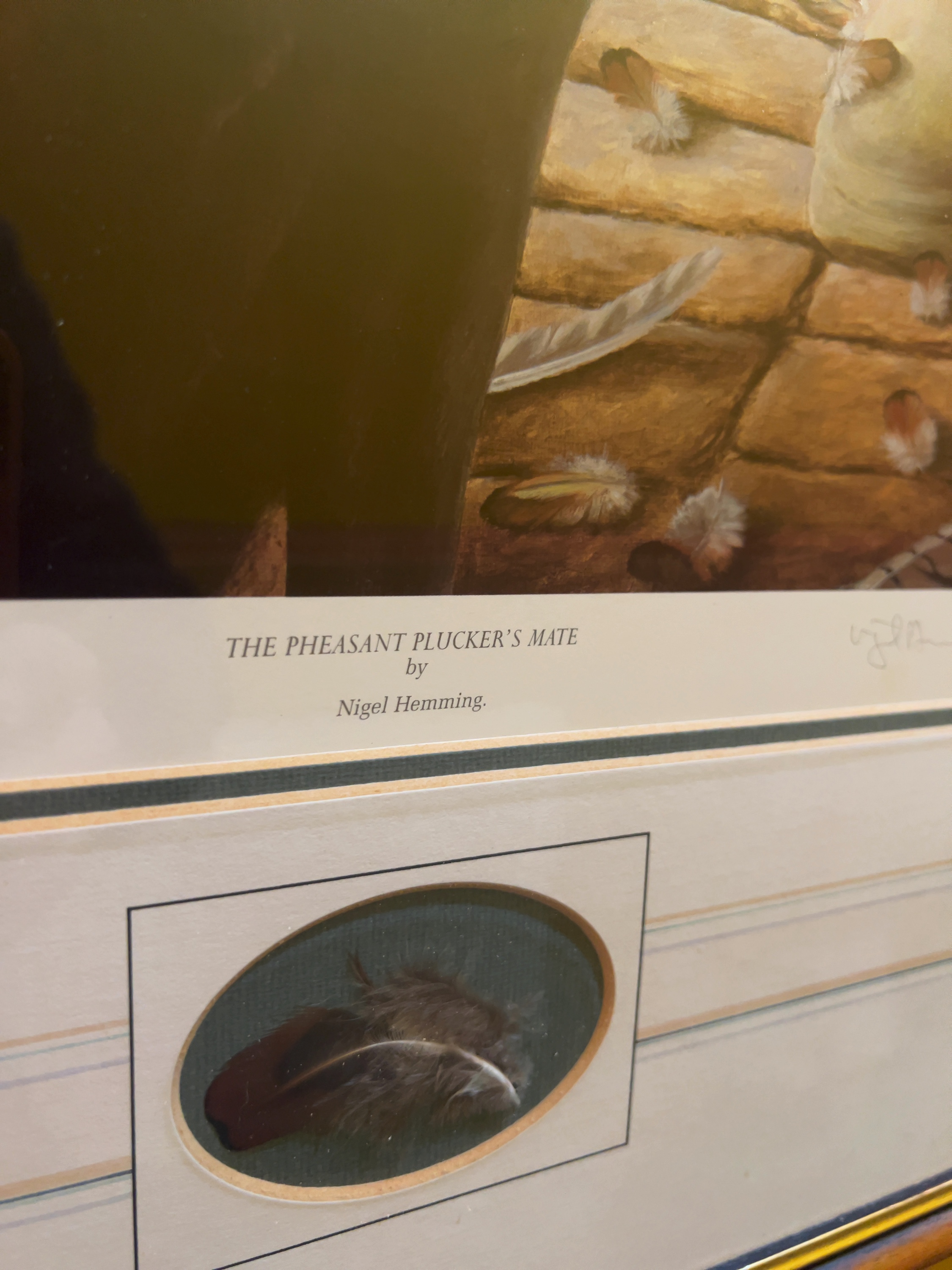 A limited edition colour print titled The Pheasant Plucker’s Mate by Nigel Hemming (British, born 1957) and hand-signed in pencil by the artist in the lower right margin and numbered 13/750 in the lower left. A Washington Green publisher’s blind stamp is visible in the lower left margin.