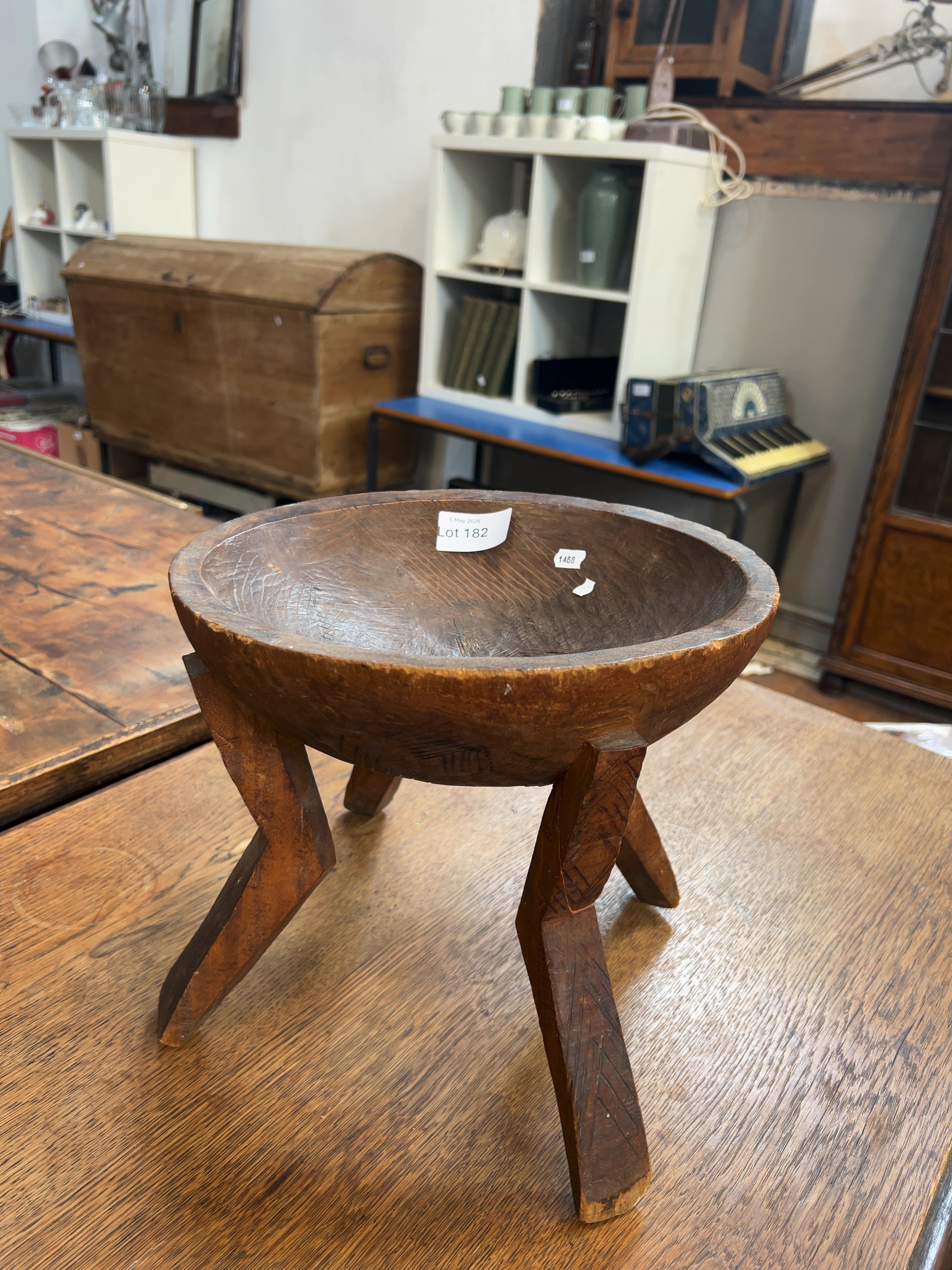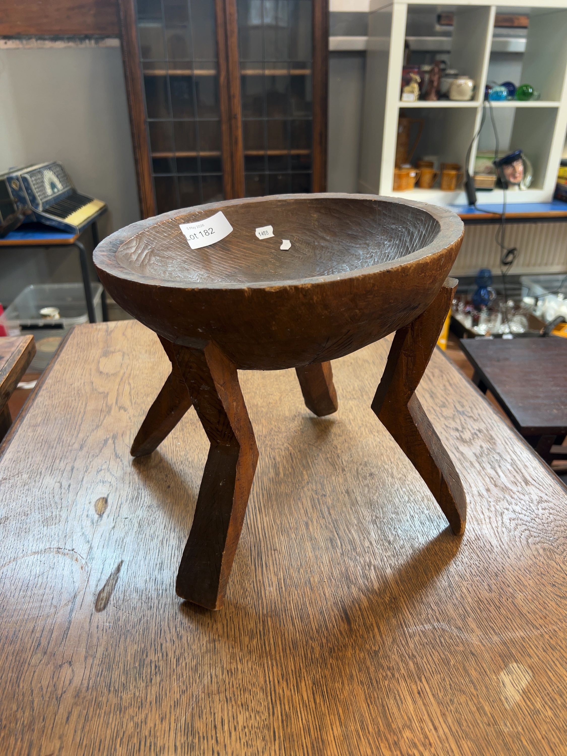 An ethnographic hand-carved footed bowl, attributed to the Oromo people of the Jimma region, Ethiopia.