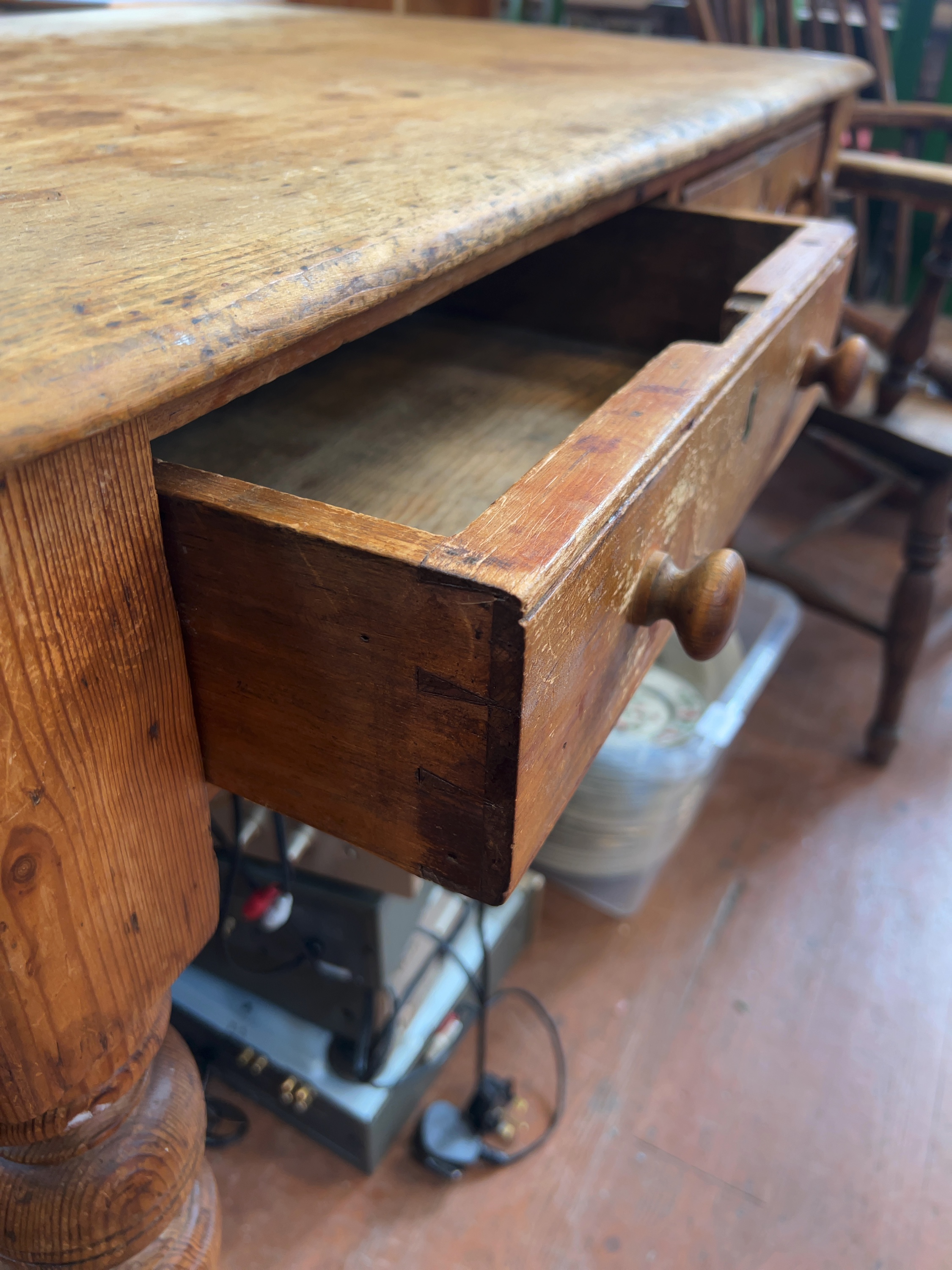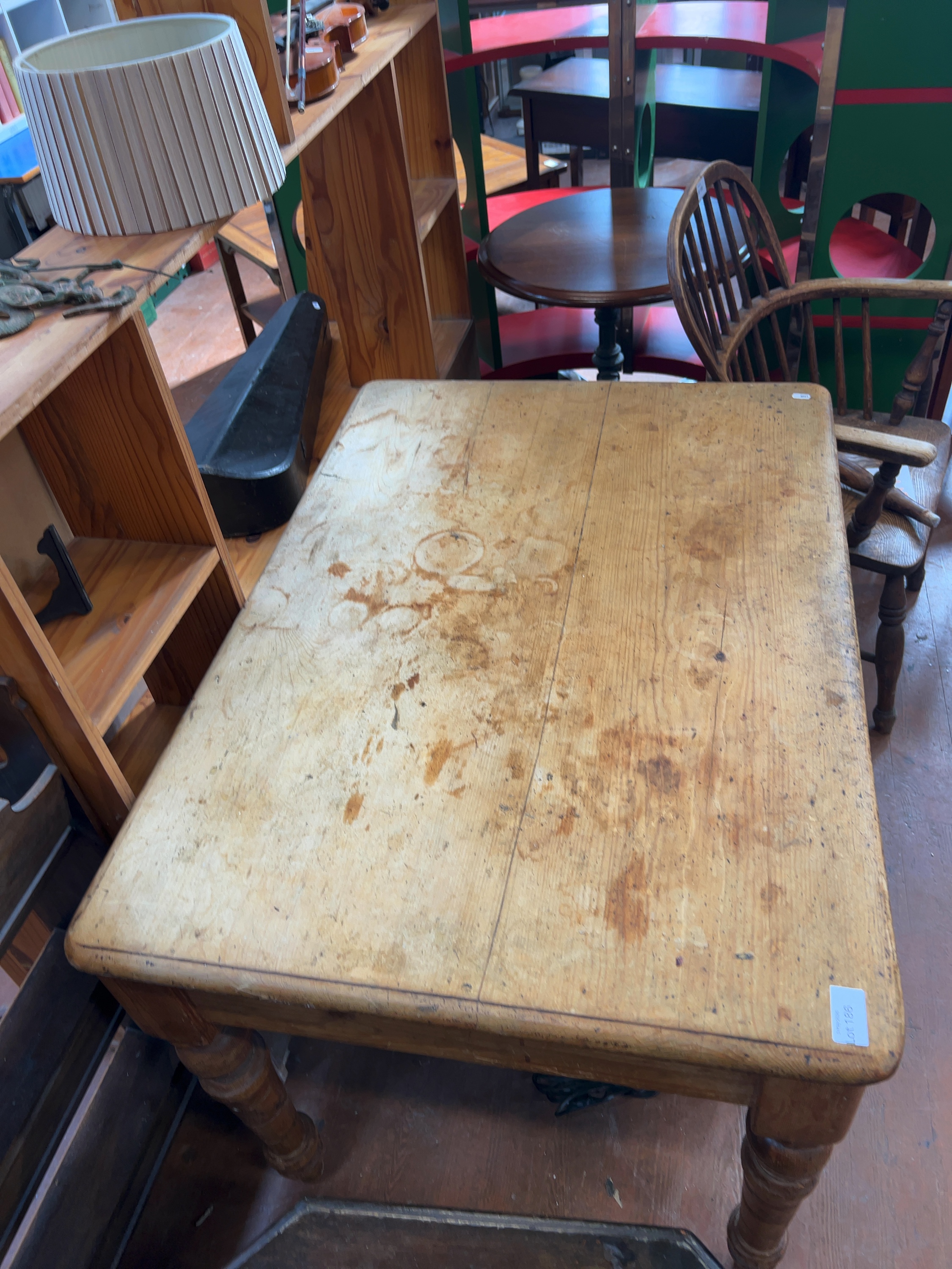A Victorian pine side or kitchen work table, dating to the late 19th century. No maker’s marks are visible.