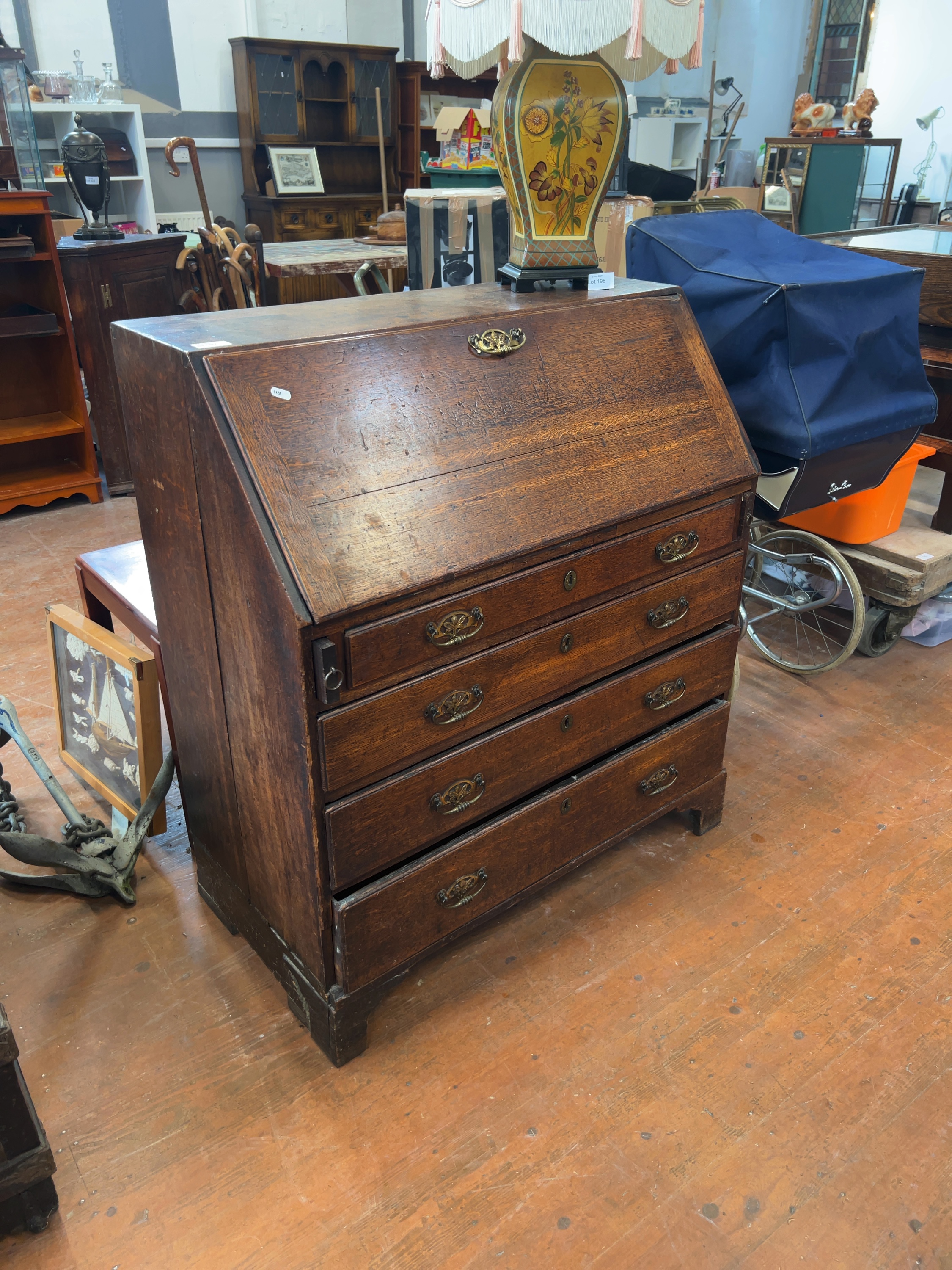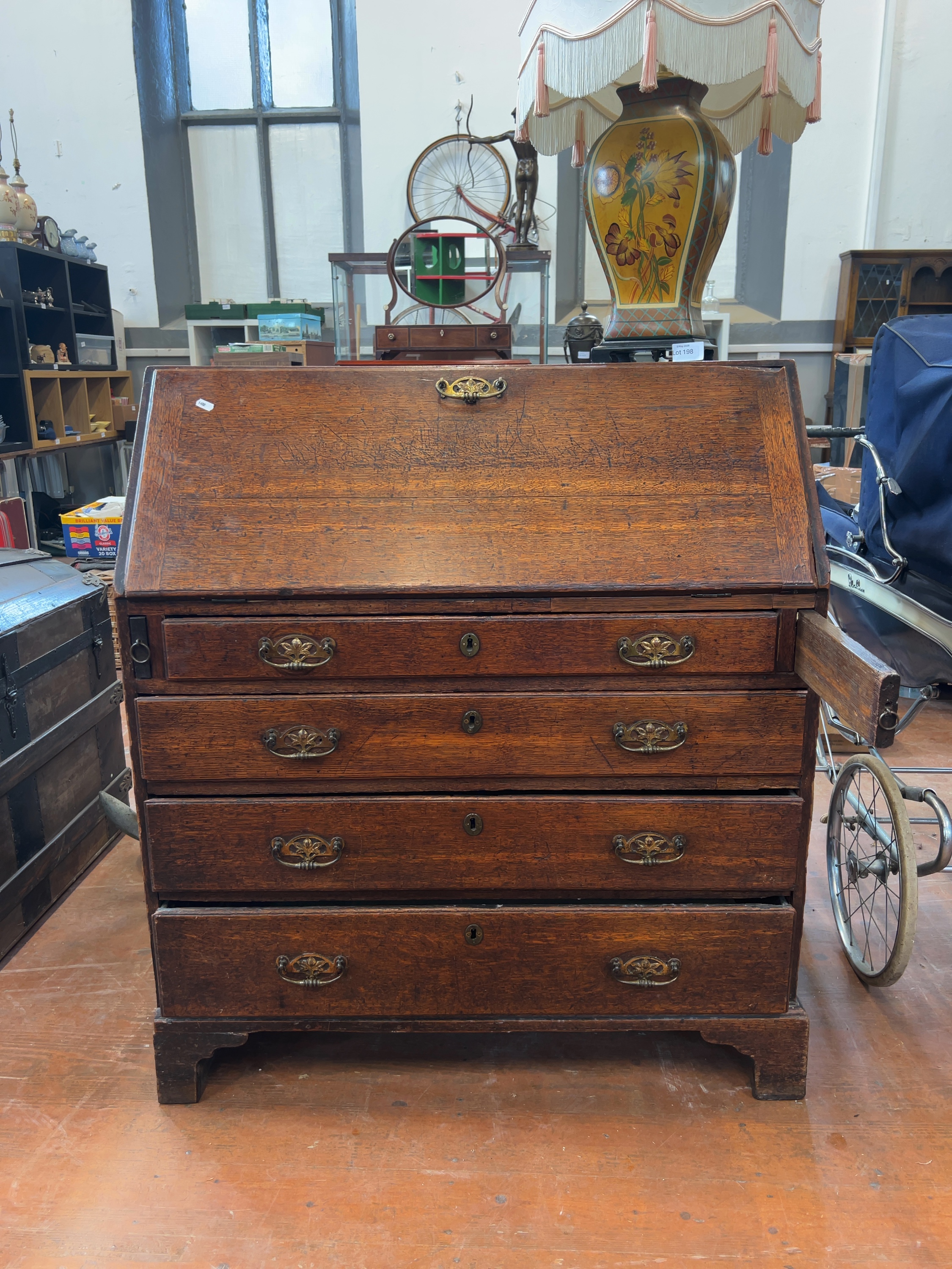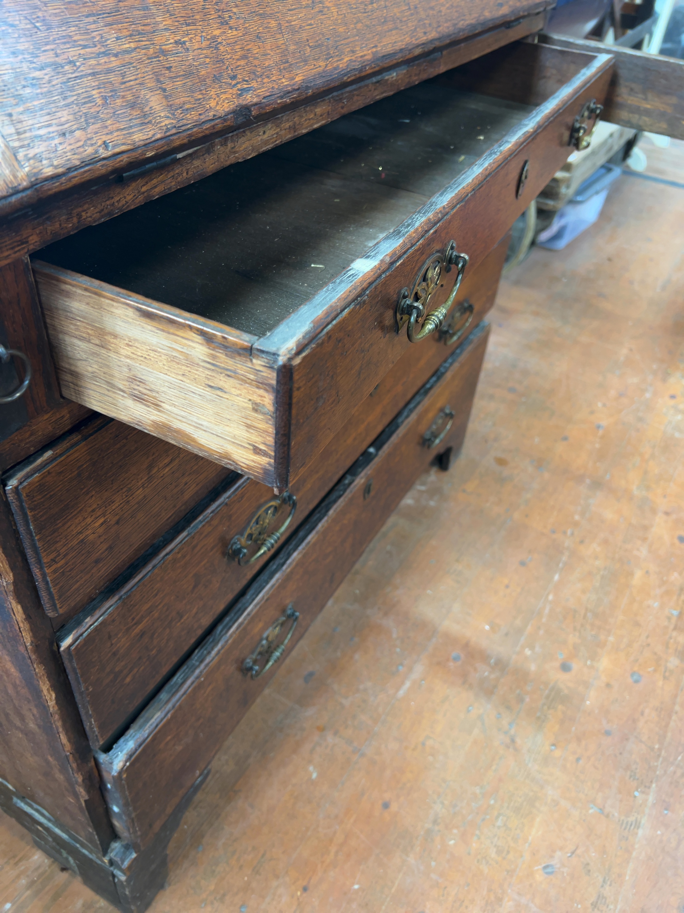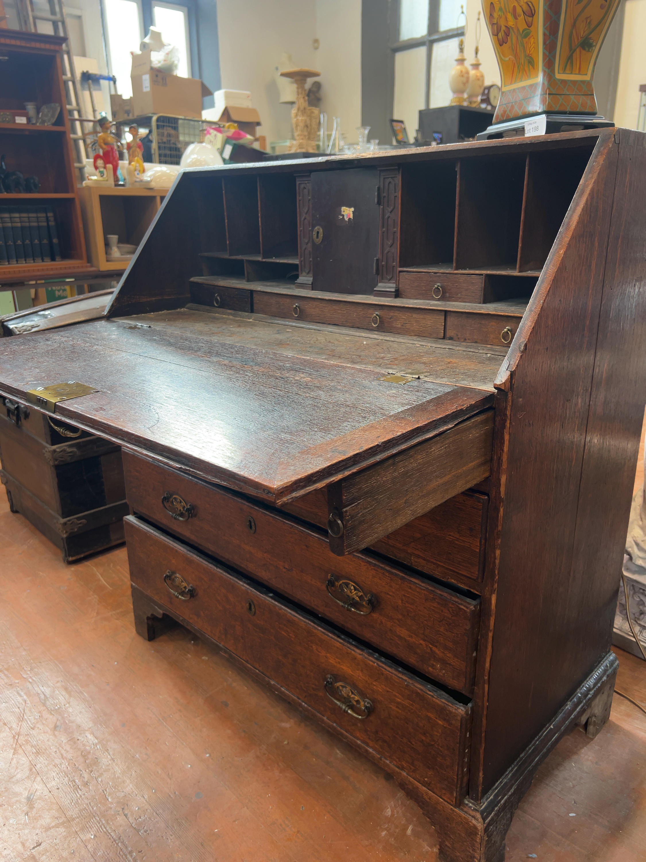 A George III period oak bureau of traditional English country design. No maker marks or stamps are visible.