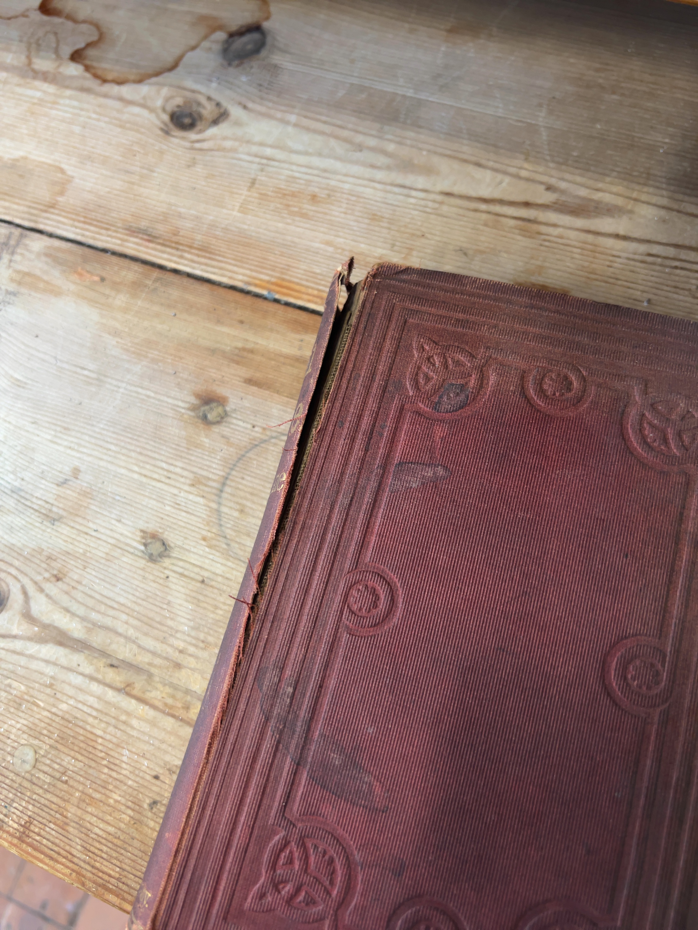 Both volumes show significant signs of age and shelf wear. The Burn volume (1854) exhibits wear to the extremities of the cloth boards and some foxing to the internal leaves, particularly the frontispiece and title page. The Rankine volume (1866) has more pronounced condition issues, including a split to the cloth at the head of the spine and a large area of discolouration or staining to the front board. There is significant foxing and toning throughout the text block of the Rankine volume. Neither volume contains a dust jacket.