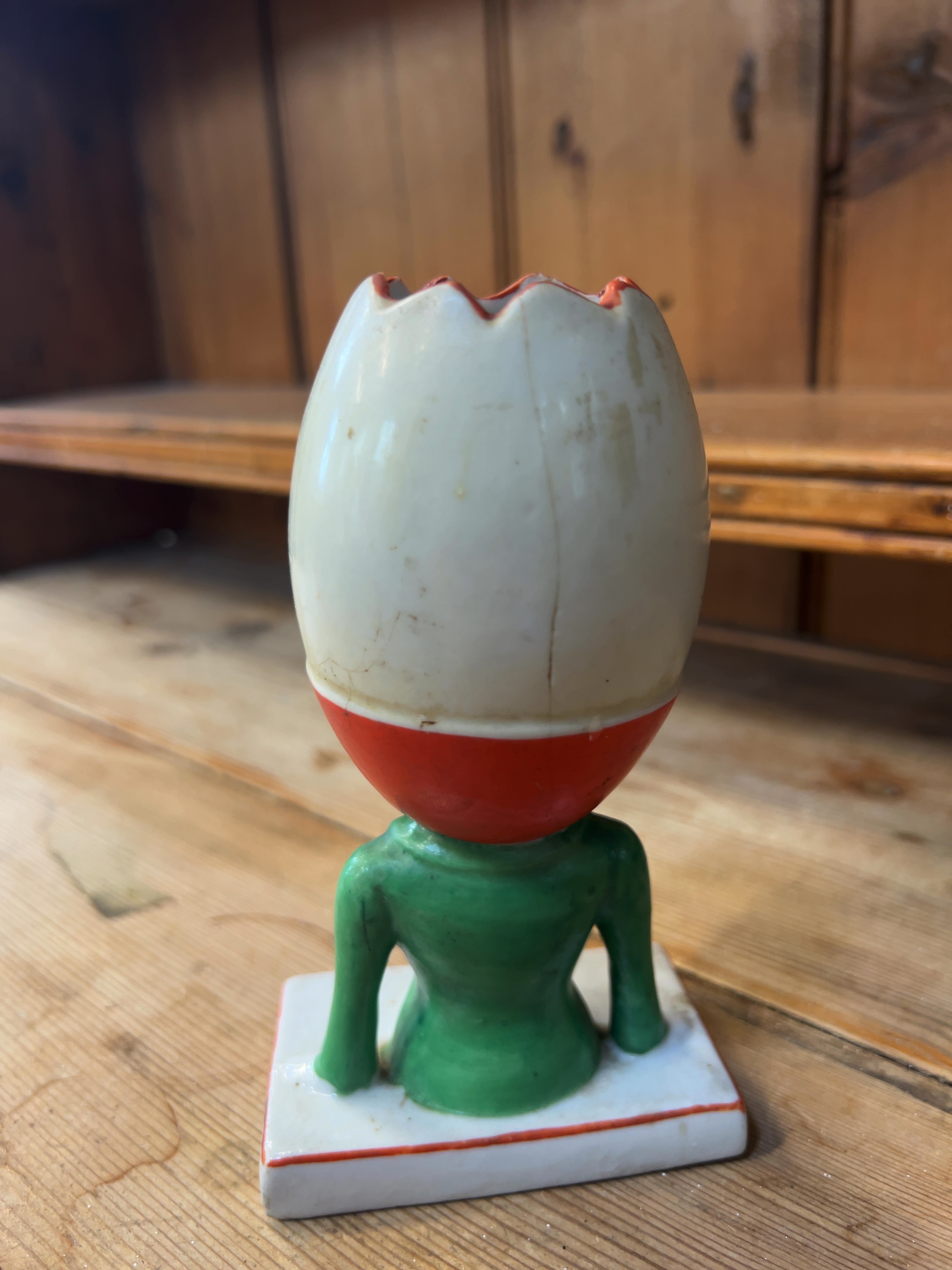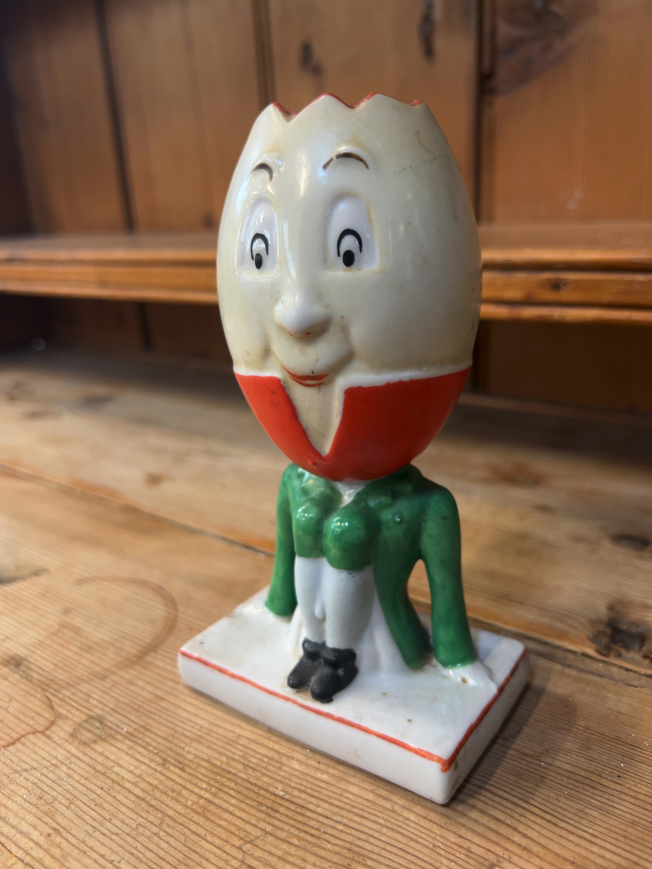A vintage novelty ceramic egg cup modelled as the nursery rhyme character Humpty Dumpty, produced in the mid-20th century in the style of Carlton Ware nursery ceramics. No manufacturer marks are visible.