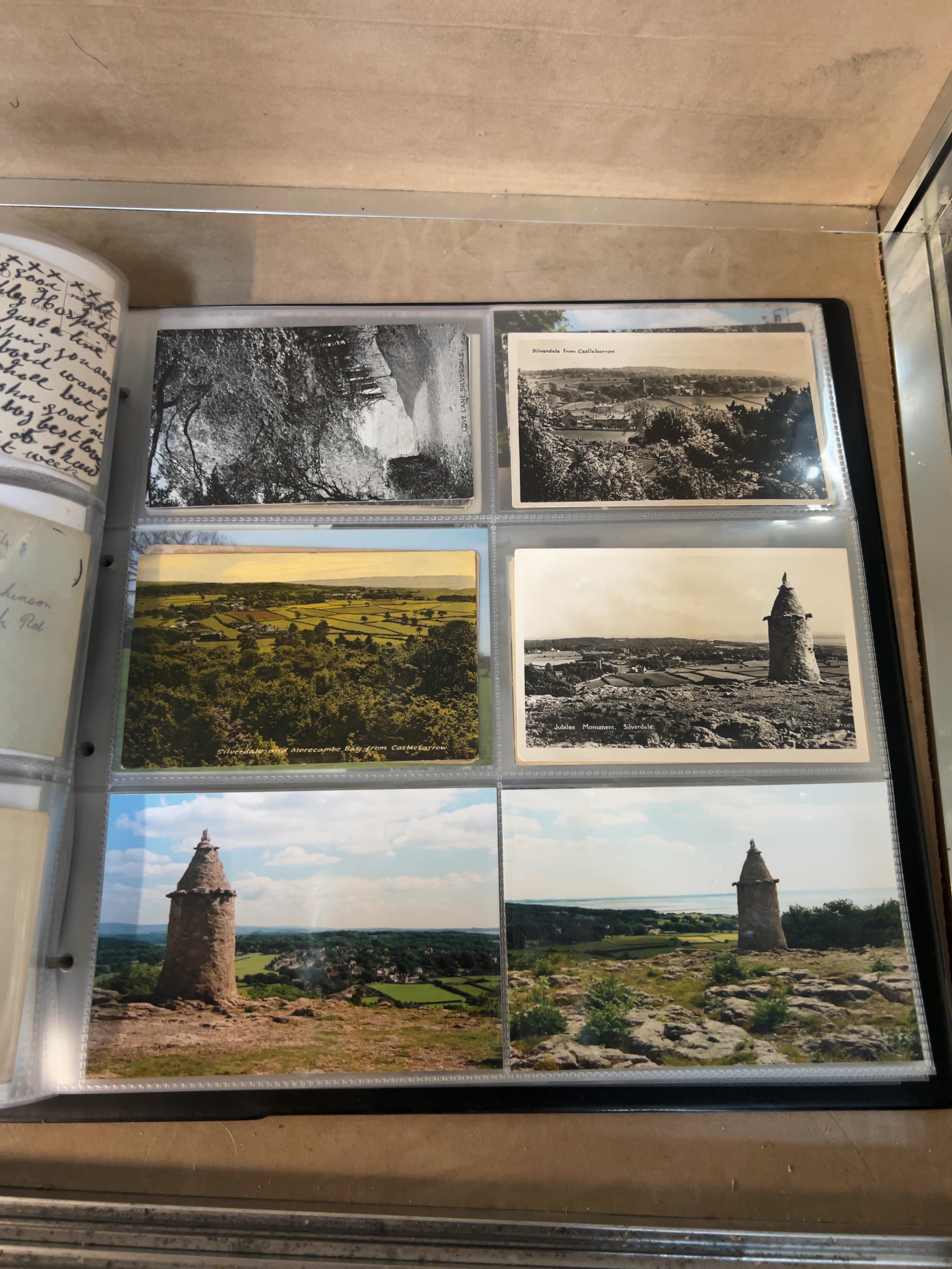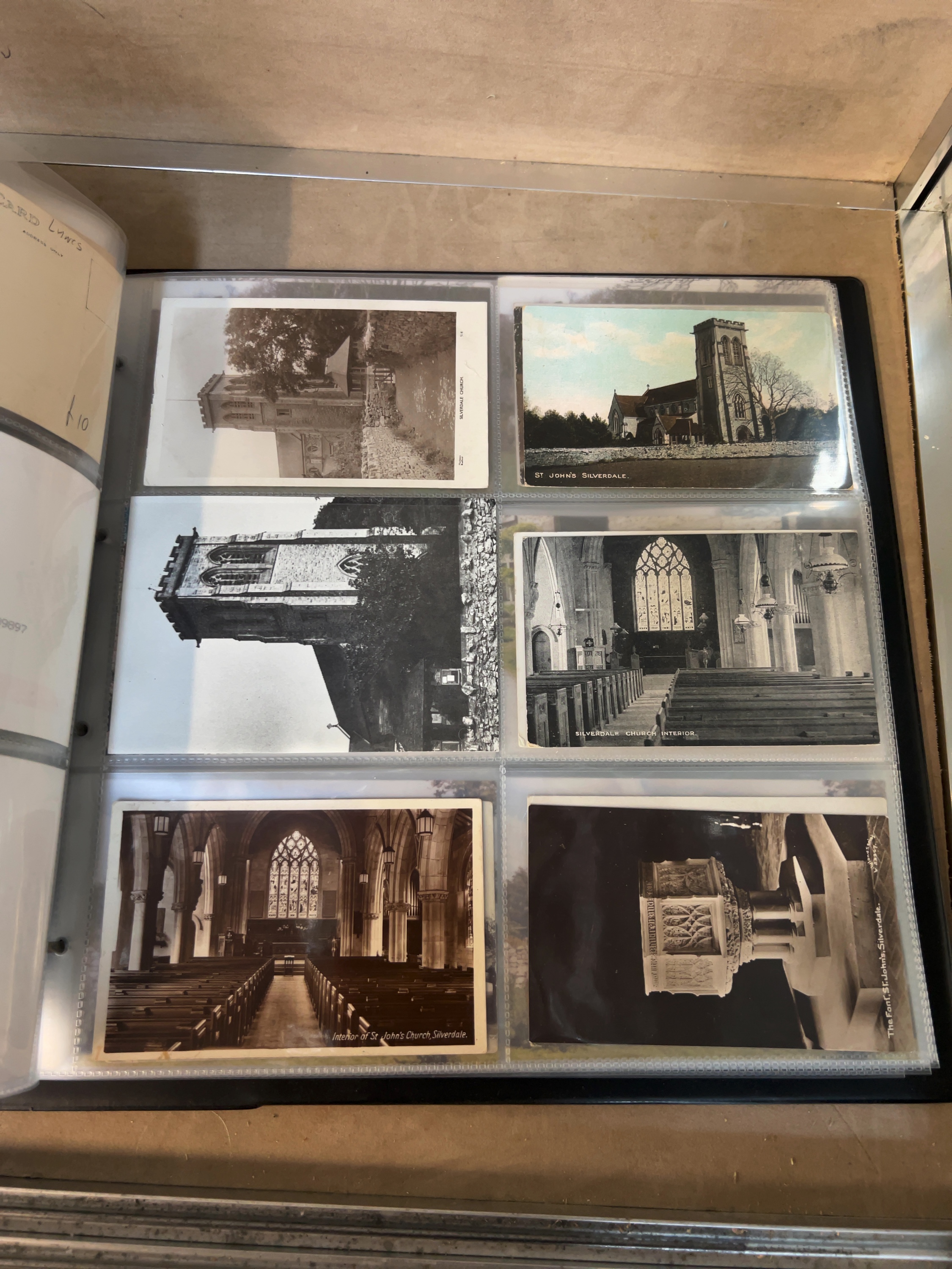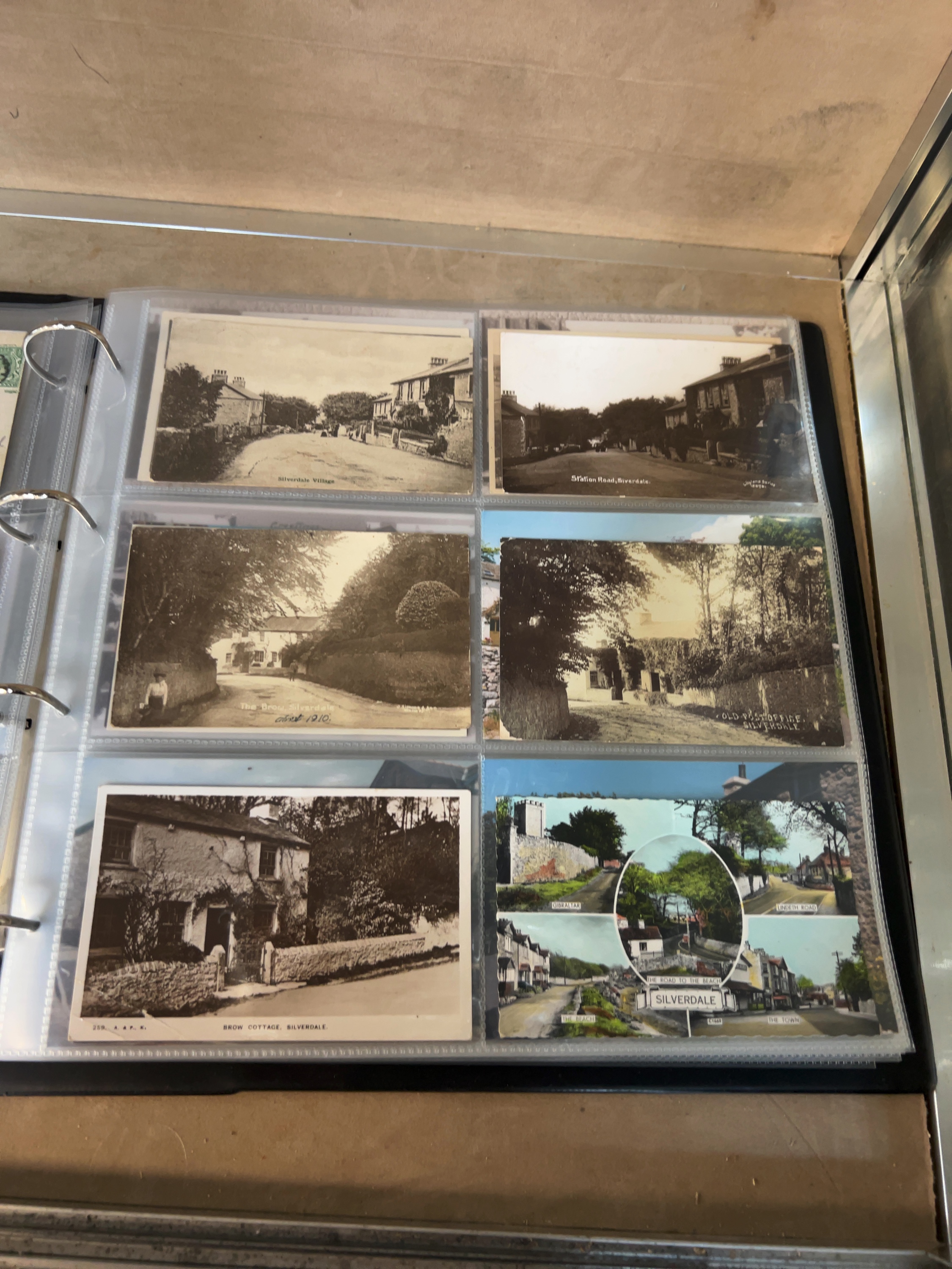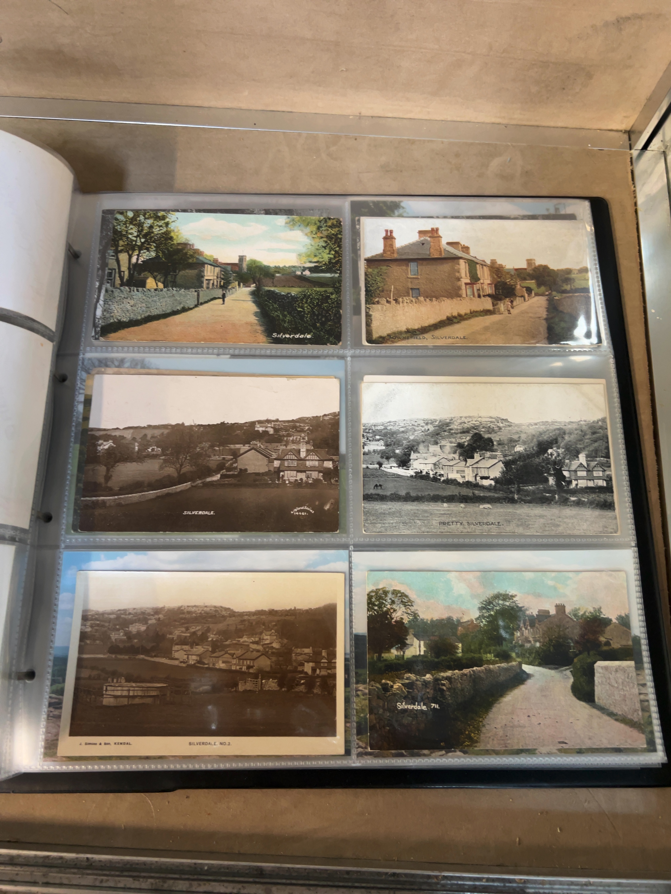 This lot comprises an extensive collection of topographical postcards focused on the village and coastal area of Silverdale, Lancashire. The collection contains approximately 130 cards, spanning from the early 20th century to more modern eras. A handwritten vendor note is included, identifying the contents as approximately 130 cards of Silverdale in black and white and colour.