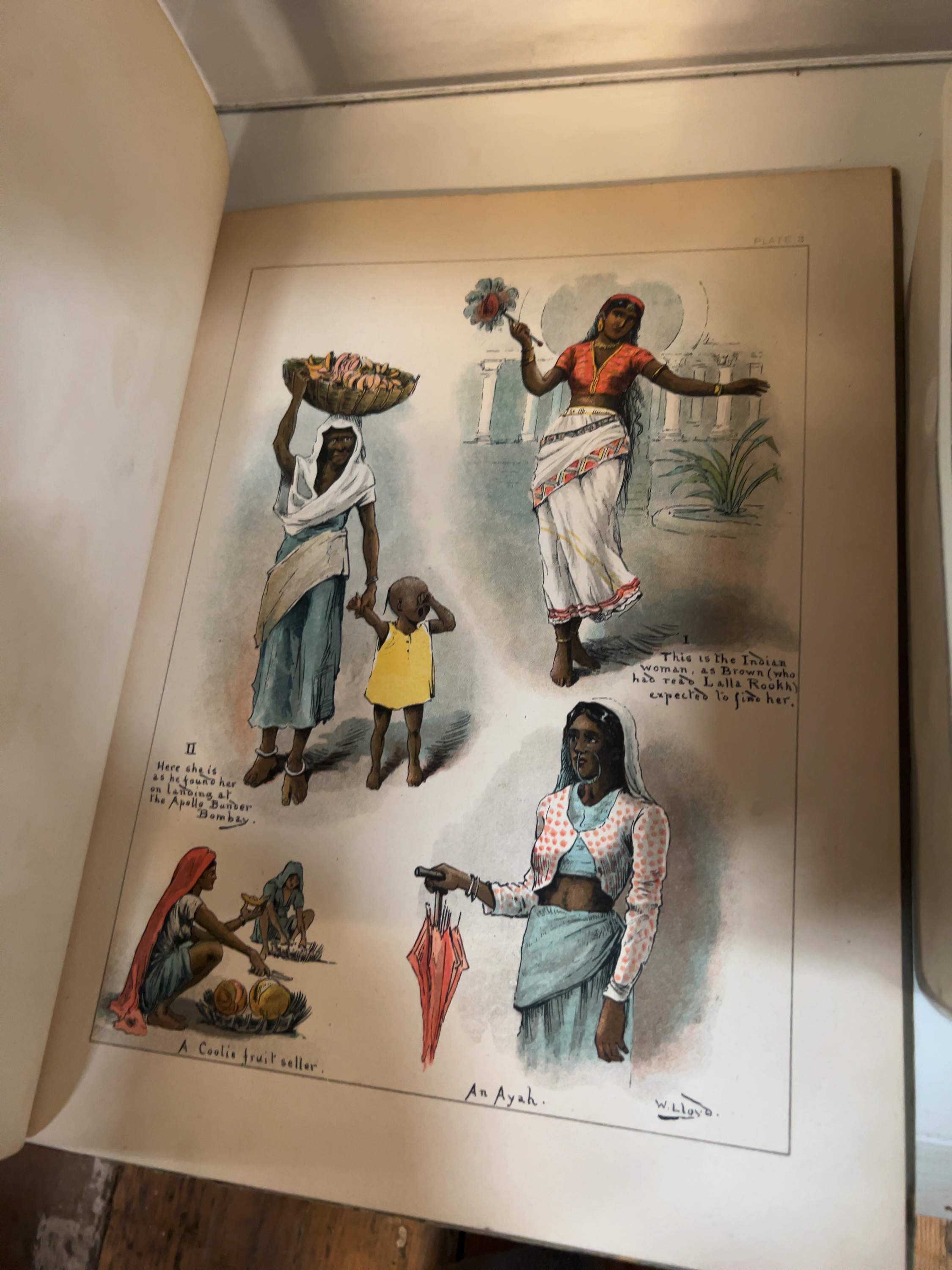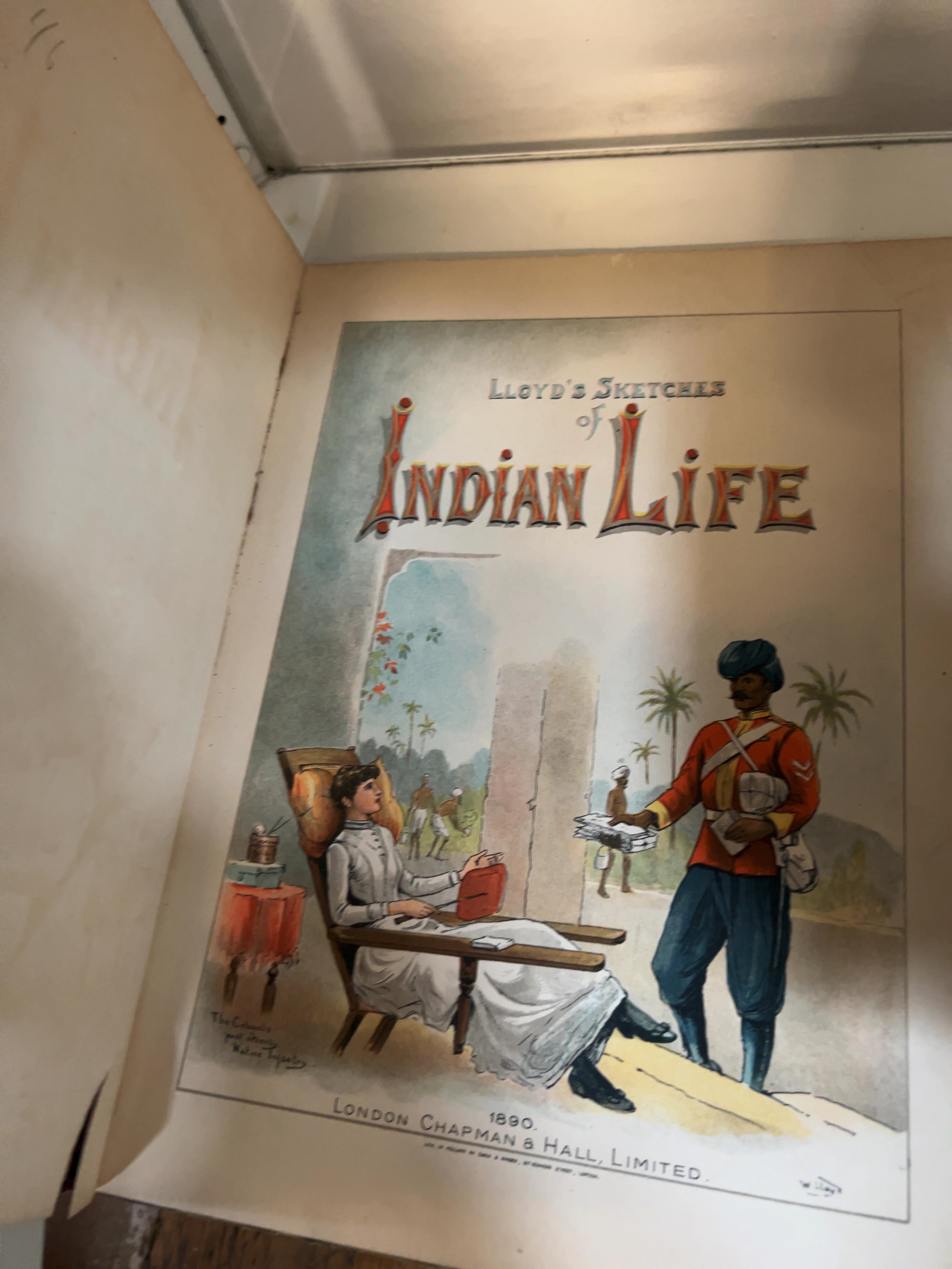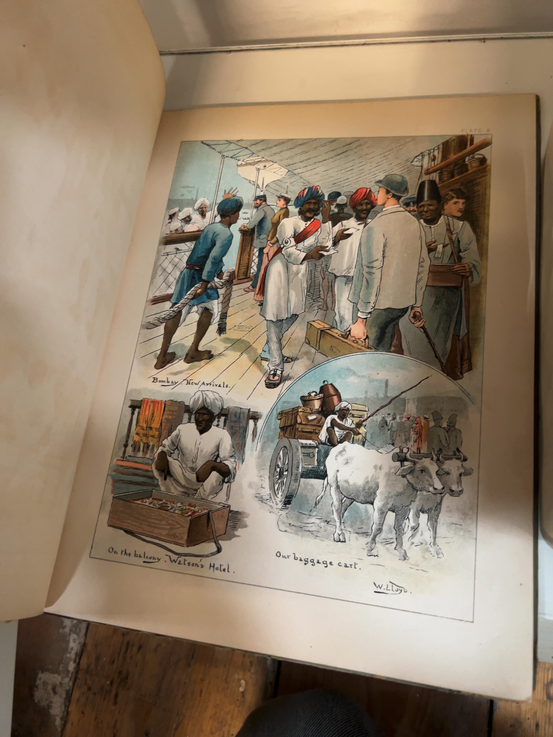 This quarto-format volume features a series of full-page colour chromolithograph plates depicting various aspects of British colonial life in late 19th-century India. The work is authored and illustrated by William Whitelock Lloyd, with lithography executed by W. Griggs & Sons, Ltd., Hanover Street, London.