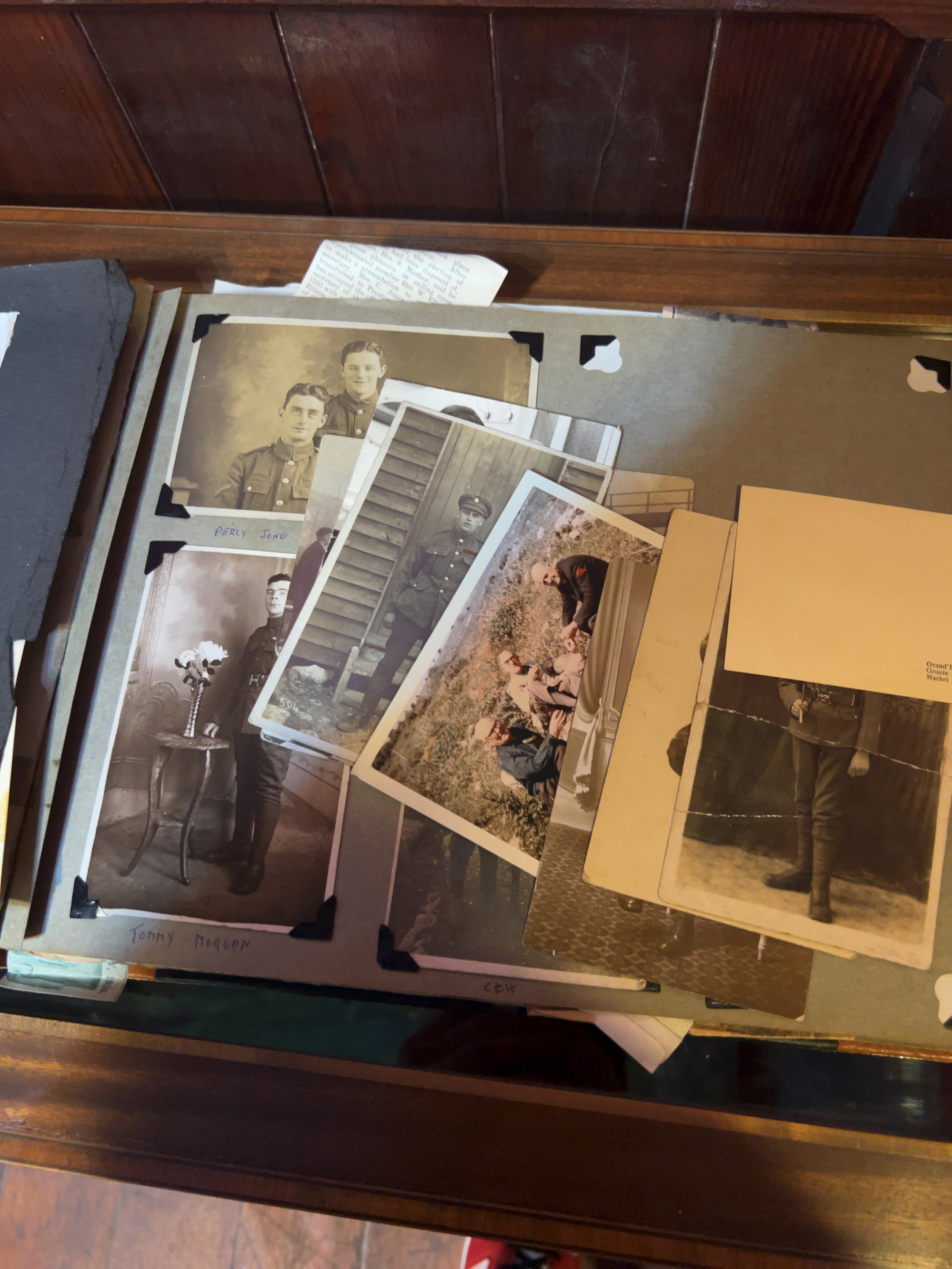 A significant personal scrap album and photograph collection documenting military service during the First World War and subsequent veteran activities, spanning the period from 1914 to 1977. The archive appears to have been compiled by a British serviceman with connections to the Rhondda Valley in Wales and the Birtle area of Greater Manchester.