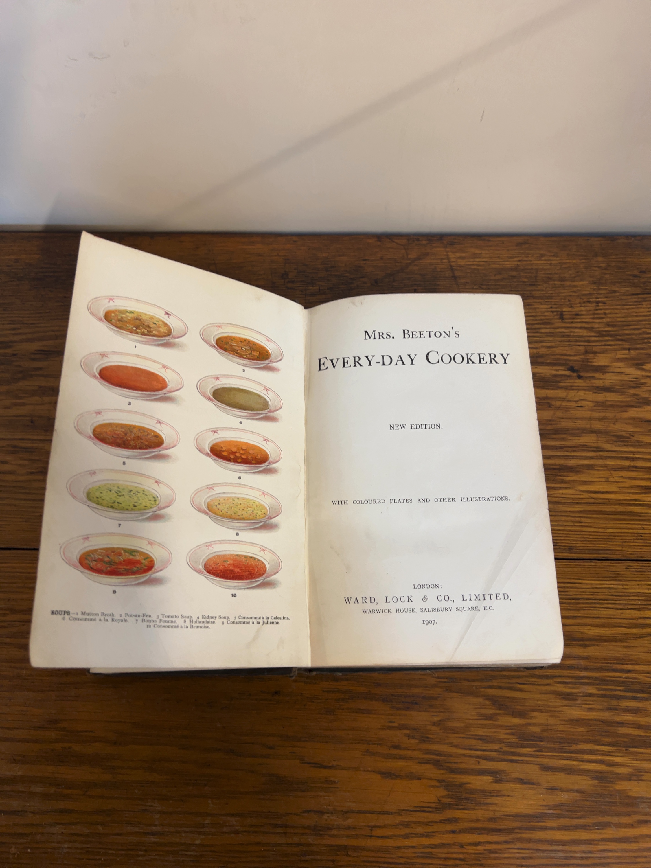A hardcover volume titled Mrs. Beeton’s Every-Day Cookery, published by Ward, Lock & Co., Limited, London, in 1907.