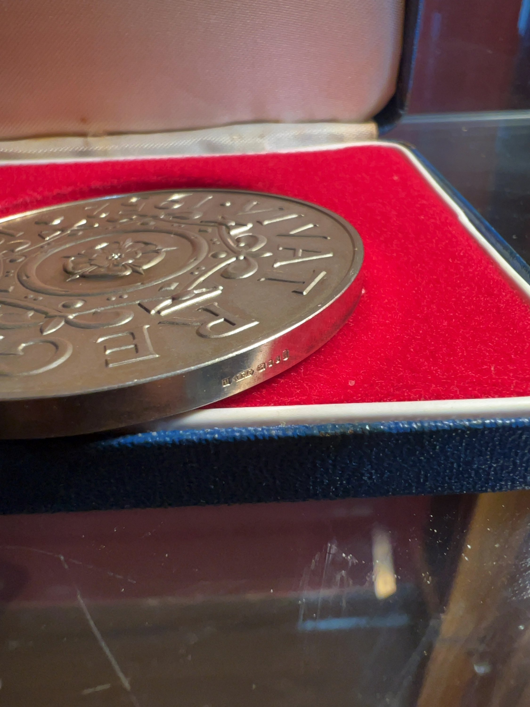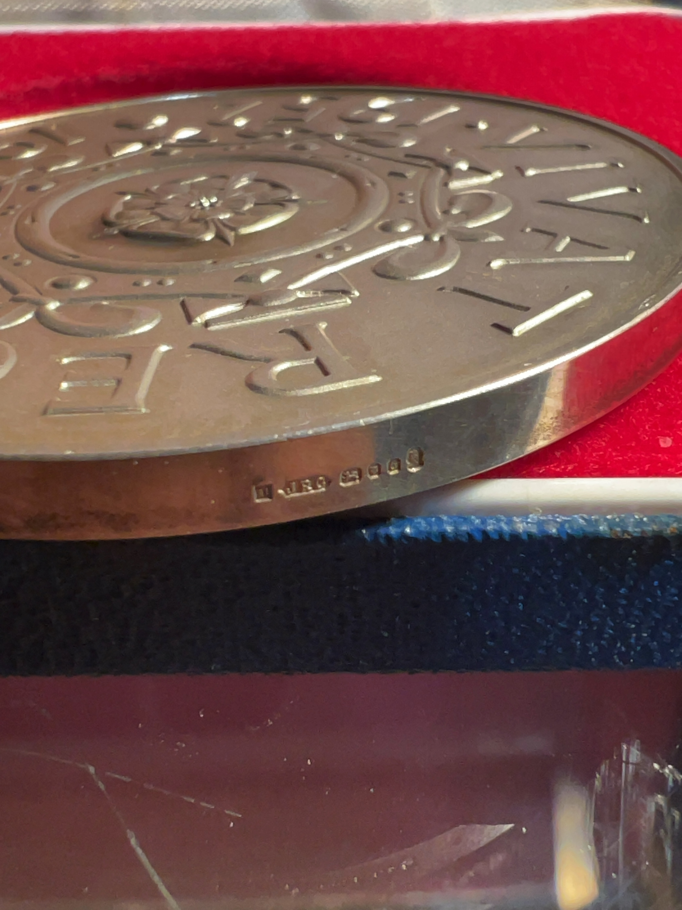 The medal is in extremely fine condition, displaying light surface toning and minor handling marks. The presentation box shows light external wear and minor staining to the interior lining.