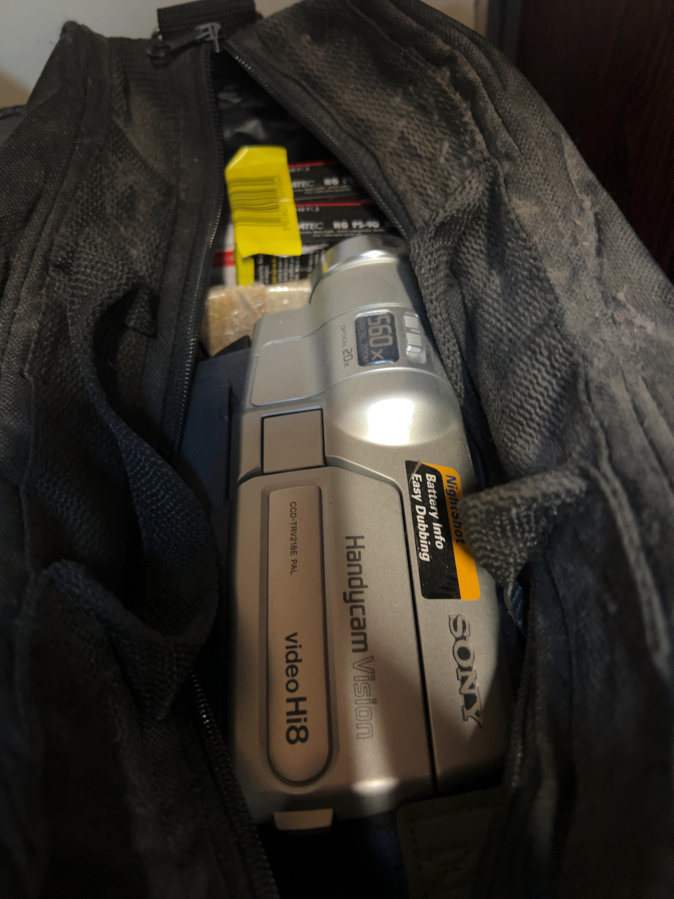 An assortment of photographic and video equipment comprising digital bridge, vintage box, and analogue video formats. The collection includes a Sony Cyber-shot DSC-H400 digital bridge camera, serial number 0204767, fitted with a Sony lens featuring 63x optical zoom, focal length 4.4-277mm, and aperture f/3.4-6.5. The body is finished in textured black polycarbonate. Also present is a Sony Handycam Vision camcorder, model CCD-TRV218E PAL, for the Video Hi8 analogue format. This unit features 20x optical zoom and 560x digital zoom within a silver-tone plastic casing and retains original feature stickers. Vintage items include a Coronet Consul box camera for medium format film, featuring a decorative green and silver patterned faceplate, and an Agfa Synchro Box medium format camera with a black textured finish, marked Made in Germany. The lot further contains a partially visible silver-tone Samsung digital compact camera and several padded black and red carry bags with associated straps.