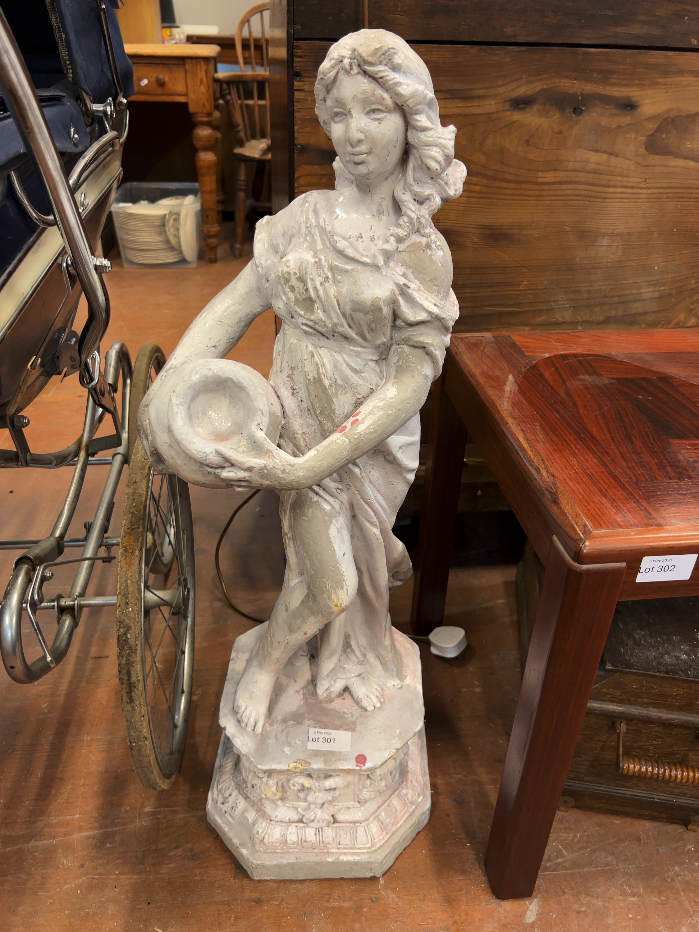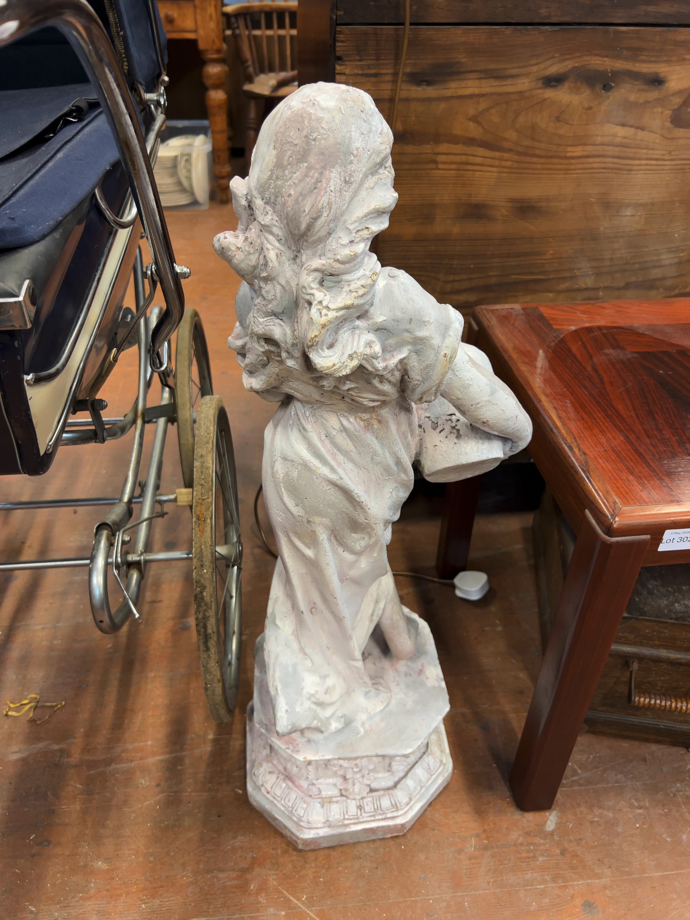 A large garden statue of a female figure in the classical style, depicted as a water carrier.No factory marks or model numbers are present.