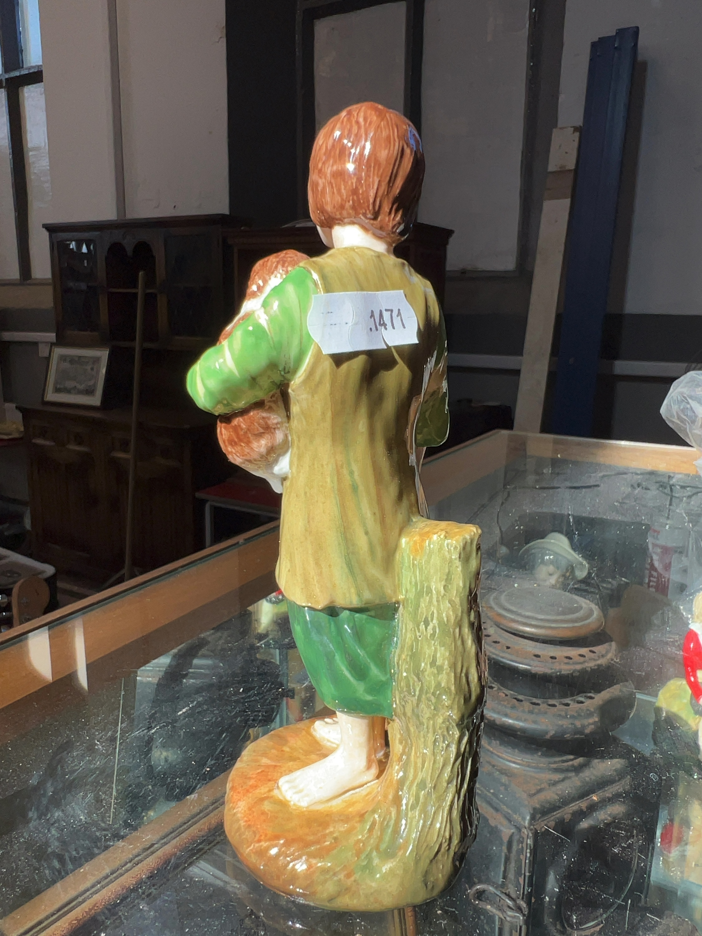 The figurine is in very good condition with no visible chips, cracks, or signs of restoration. There is a small white auction lot sticker numbered 1471 applied to the back of the figure. The glaze remains bright and glossy throughout.