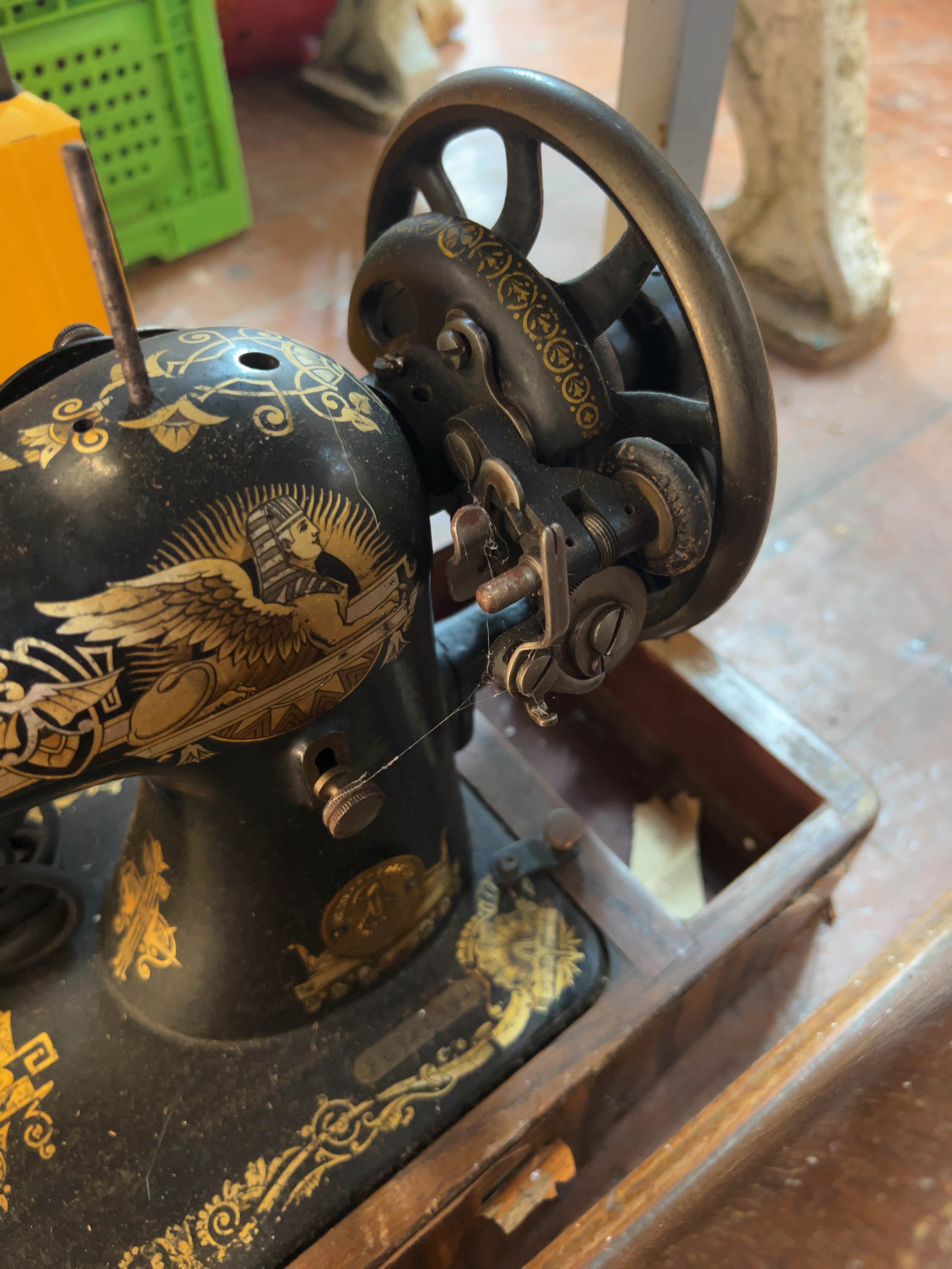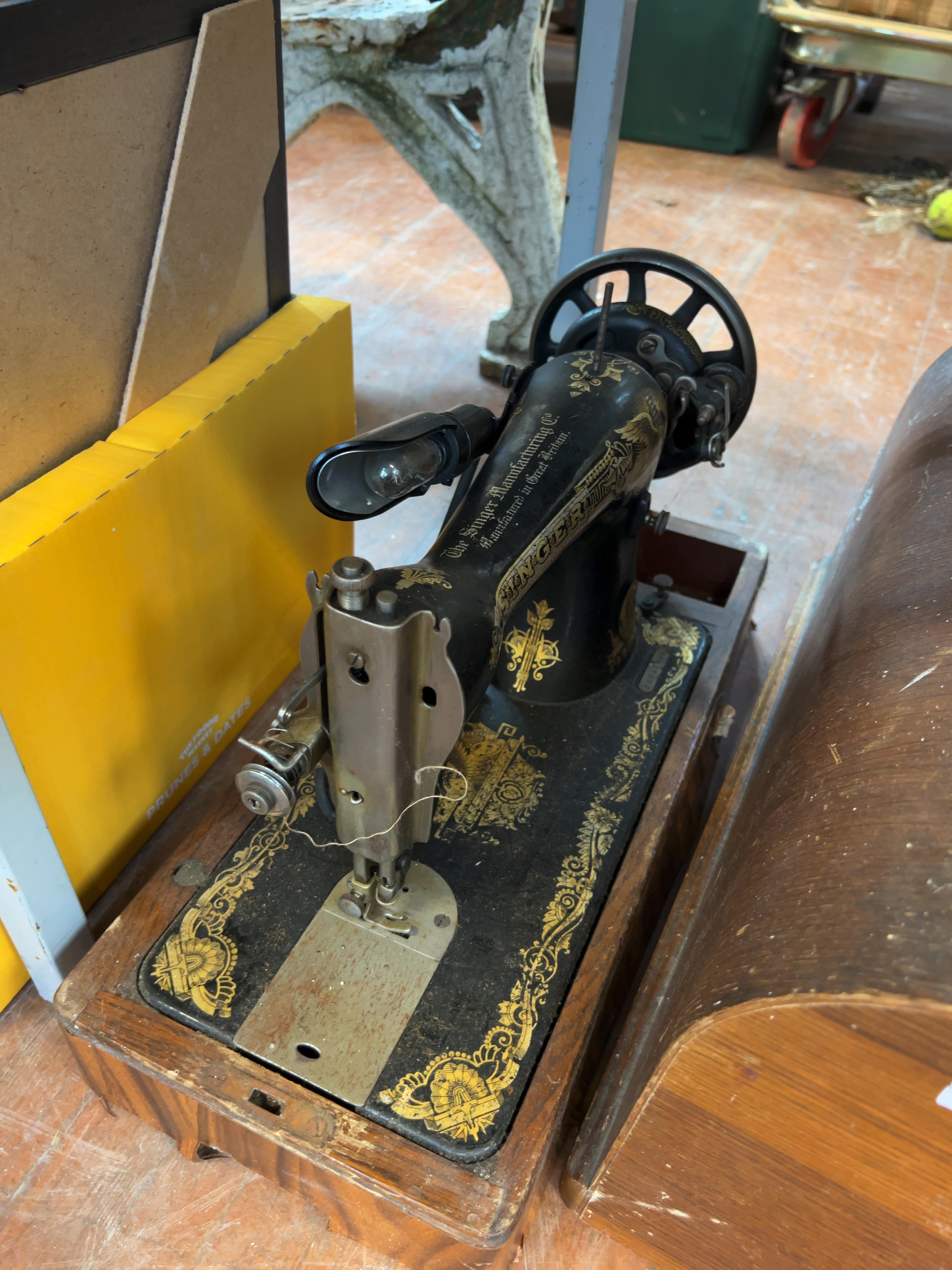 A portable sewing machine by The Singer Manufacturing Co., produced in Great Britain during the early 20th century.