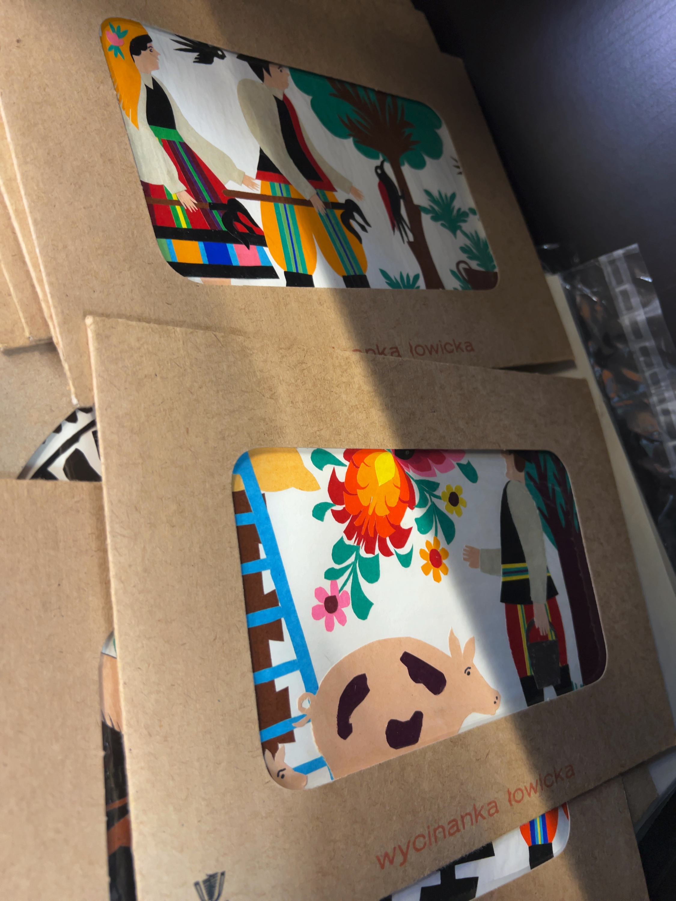 This collection features several examples of traditional Polish paper-cut folk art known as Wycinanka Łowicka, originating from the Łowicz region.