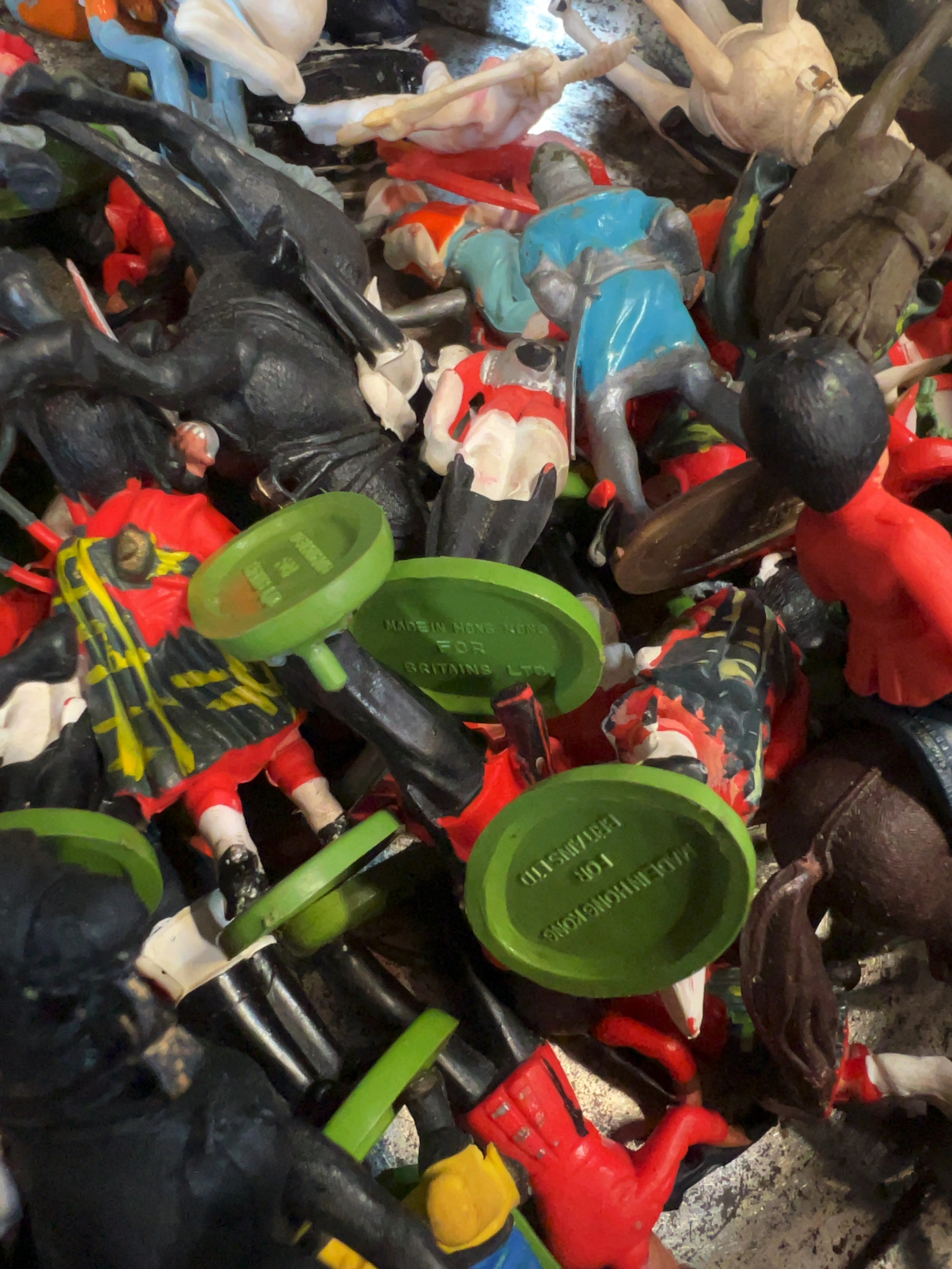 A collection of assorted plastic toy figurines manufactured by Britains Ltd. The lot contains a variety of historical and ceremonial figures, MADE IN HONG KONG FOR BRITAINS LTD.
