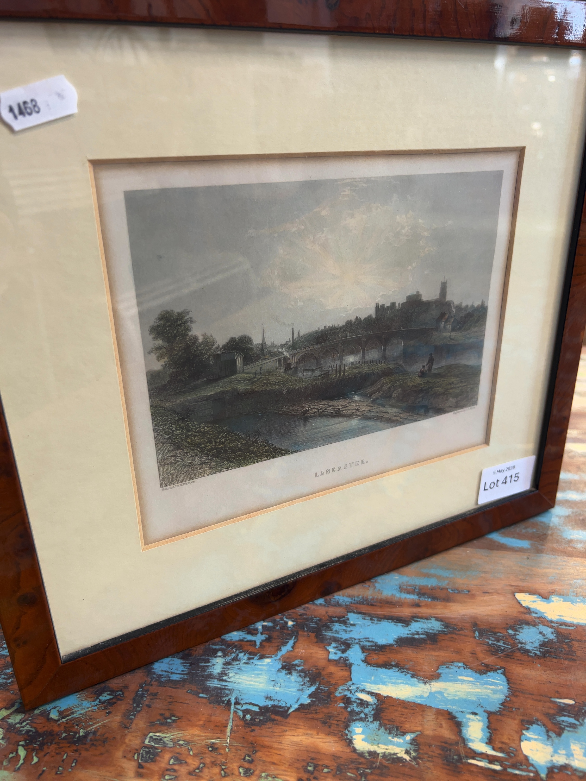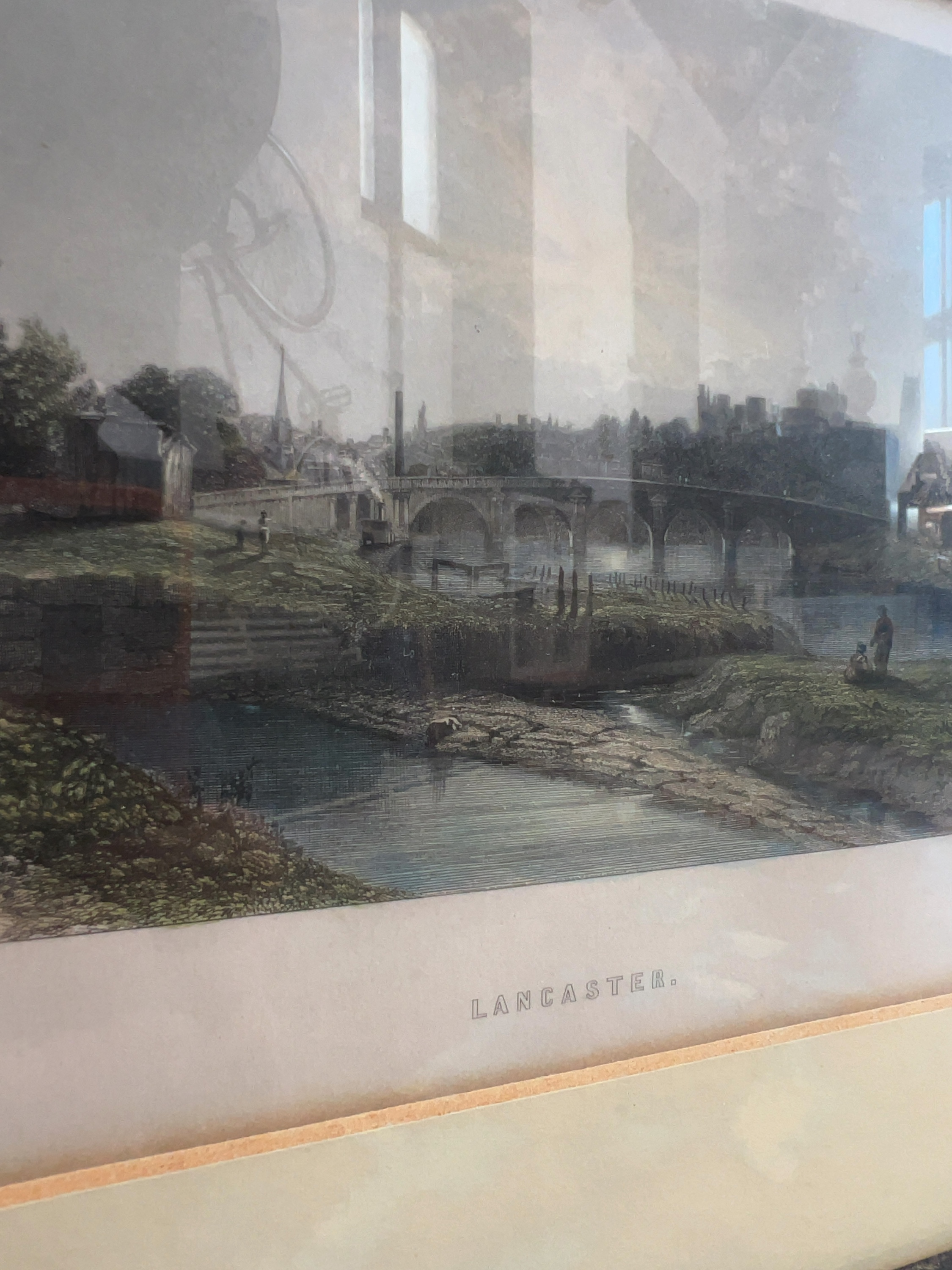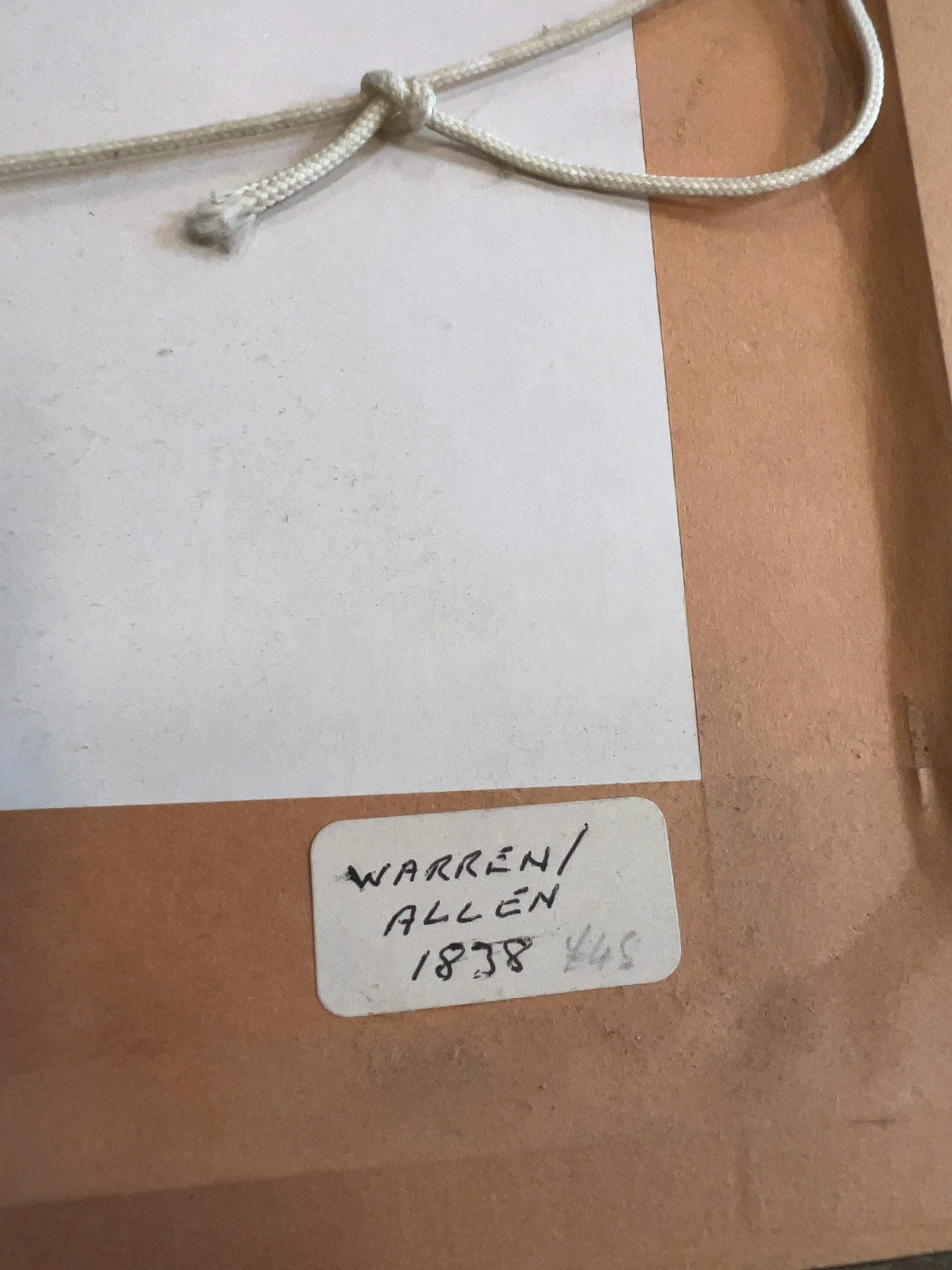 A topographical steel engraving with hand-colouring titled Lancaster, after a painting by Henry Warren (1794-1879). The scene depicts a panoramic view of the city of Lancaster, inscribed painted by H. Warren. and titled LANCASTER. A handwritten label on the verso reads WARREN / ALLEN 1838 £45, identifying the engraver as James Baylis Allen (1803-1876).