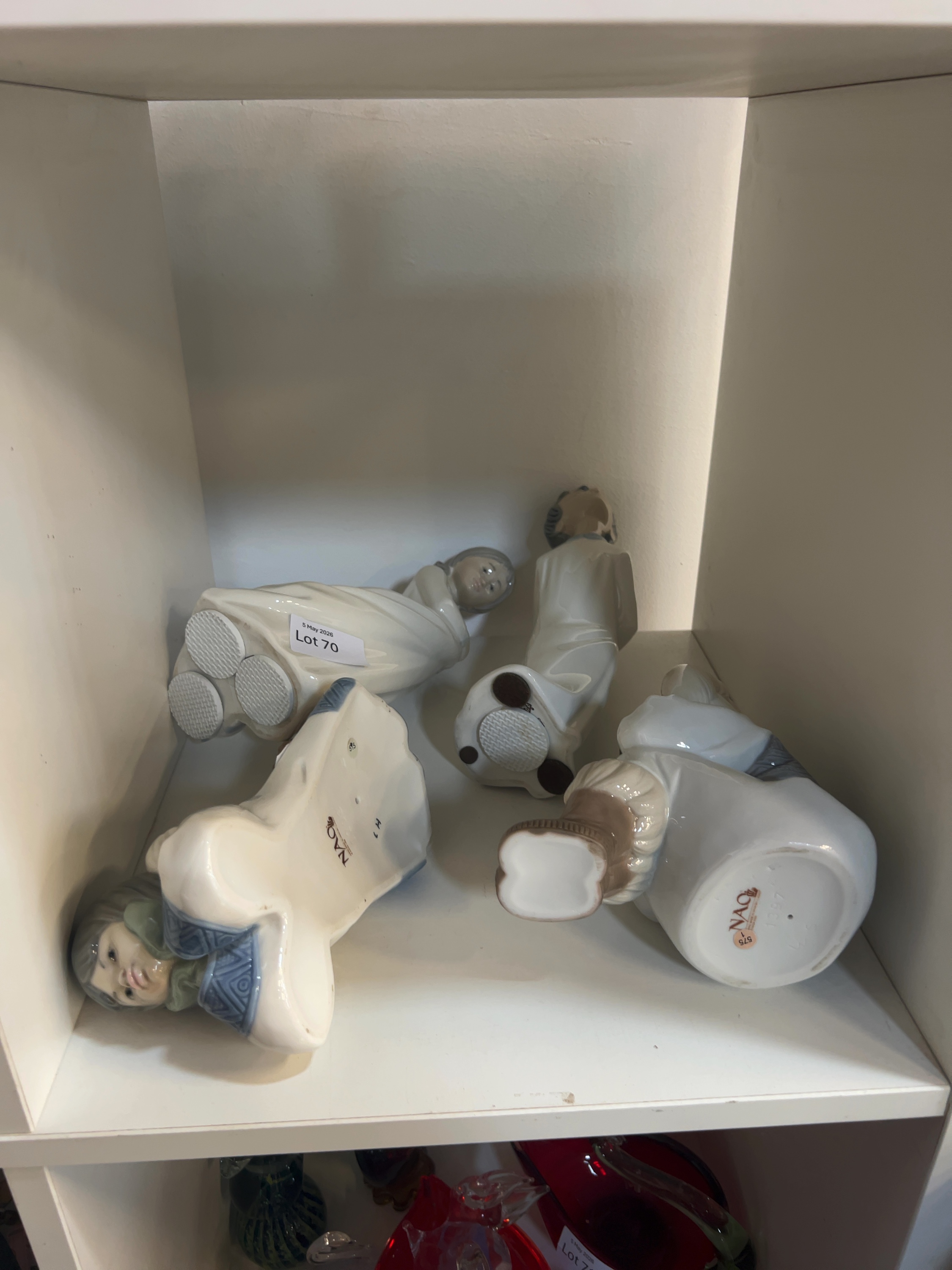 All four figurines appear to be in good overall condition with no visible chips, cracks, or professional repairs. There is minor surface wear to the undersides of the bases consistent with age and display.