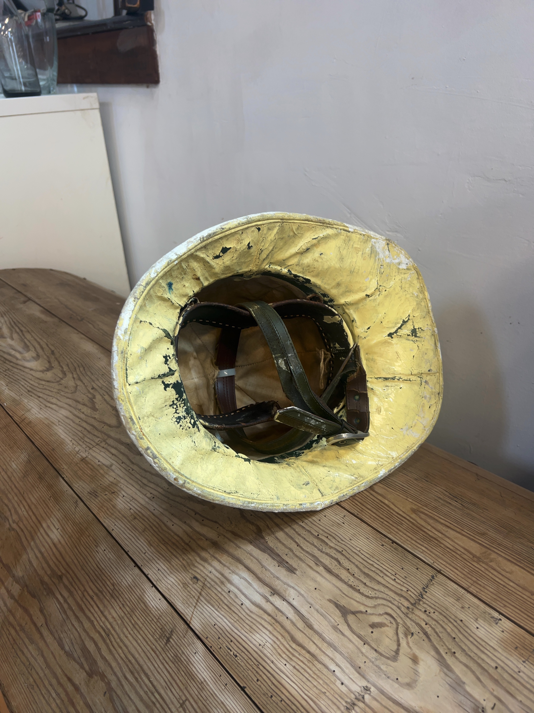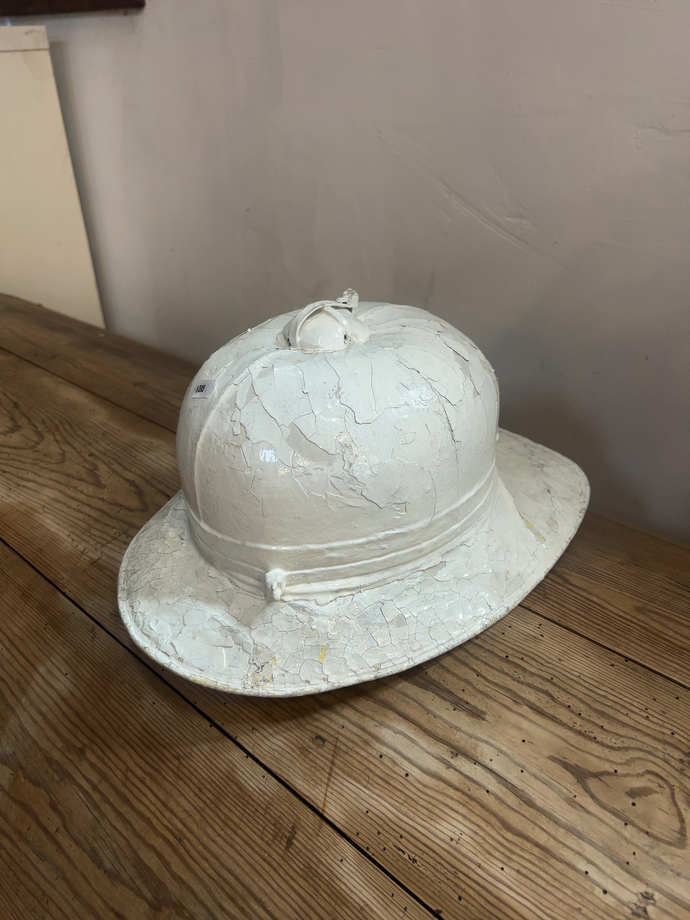 The item is a British Wolseley pattern sun helmet, a design commonly used by military and colonial forces in tropical climates during the late 19th to mid-20th centuries. No maker marks, military broad arrows, or unit identifications are visible.