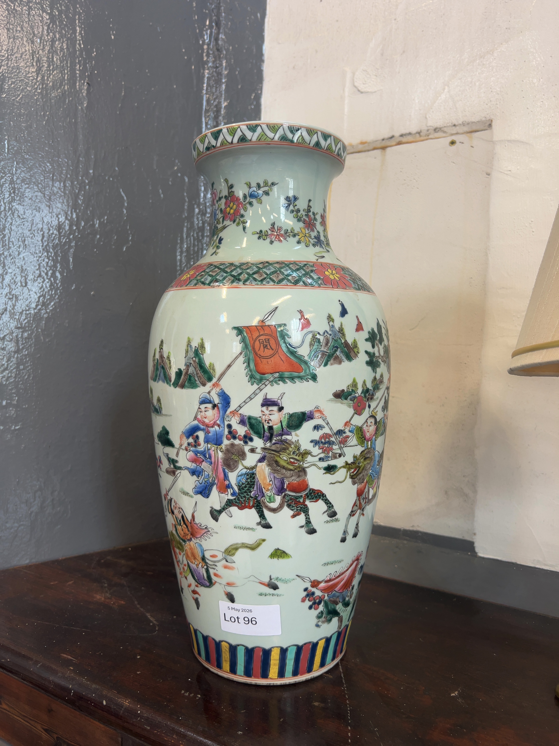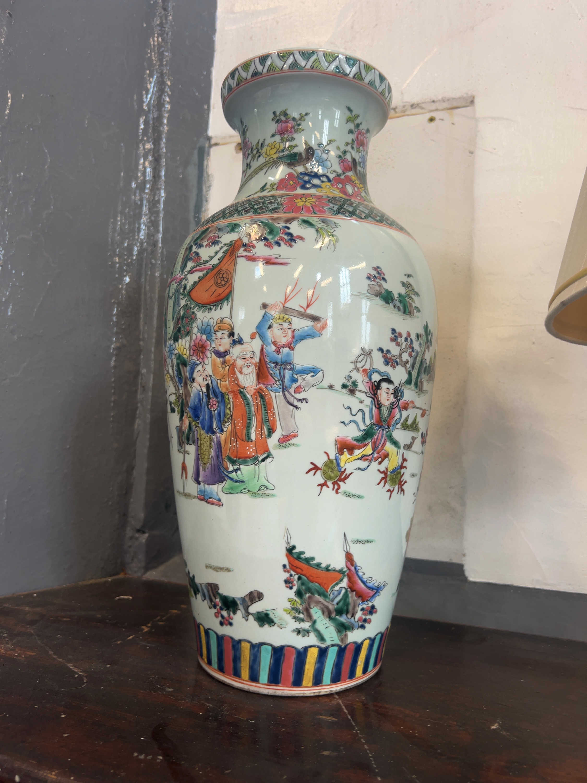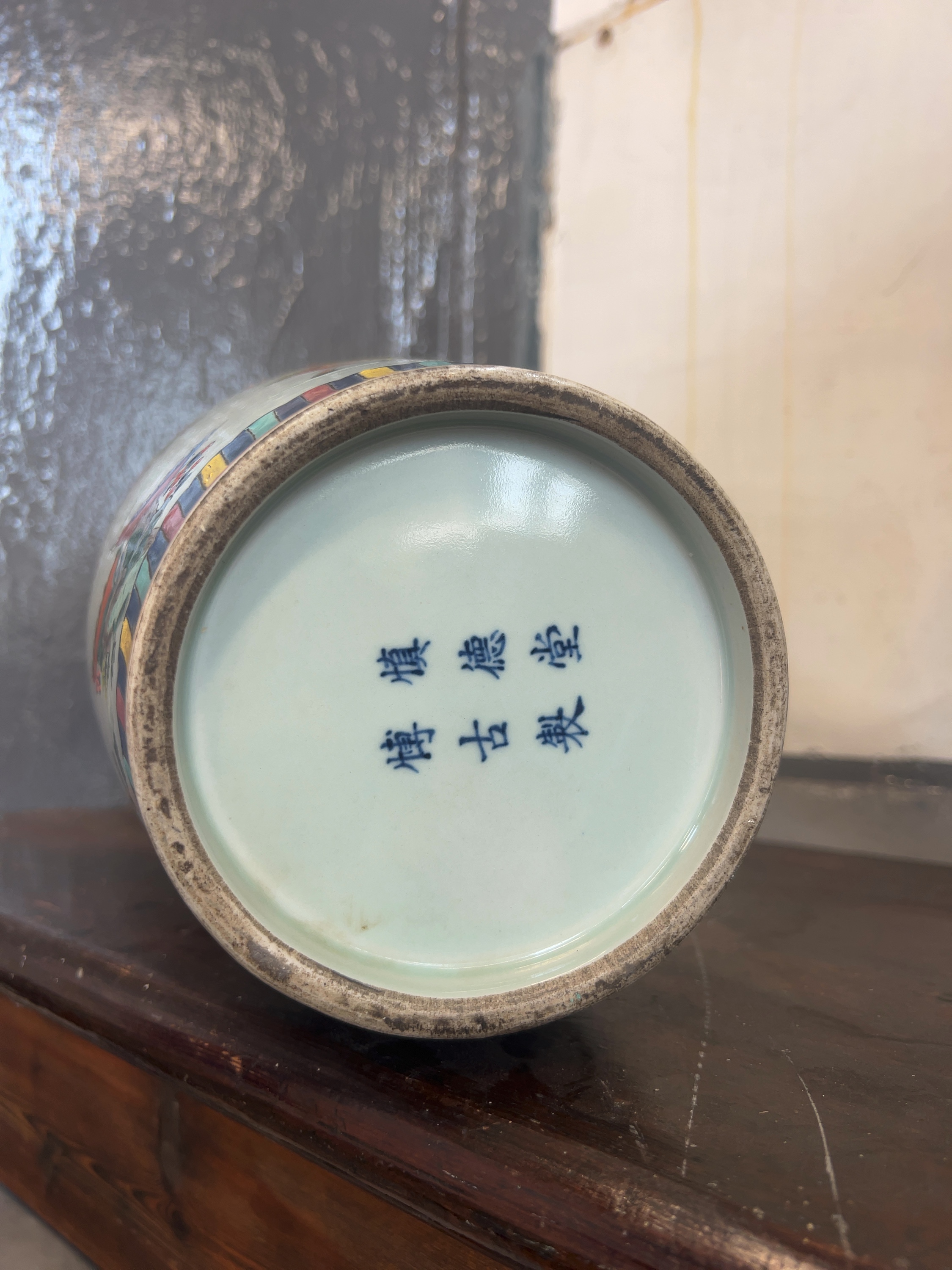 The vase is in generally good condition with no visible cracks, chips, or restorations. There is minor surface wear to the enamels and some light kiln spotting and pitting consistent with the period of manufacture. The unglazed foot rim shows typical darkening and shelf wear.